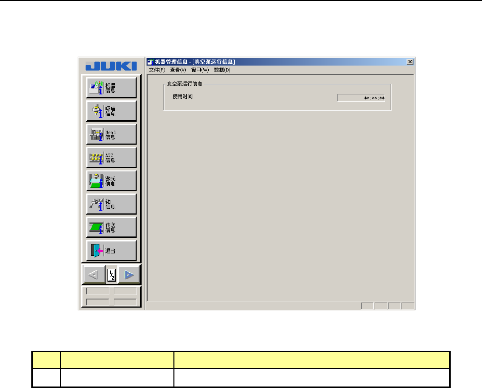在菜单栏上选择[窗口 (W)]→[其他]→[真空泵运行信息]后,会显示如下真空泵运行信息