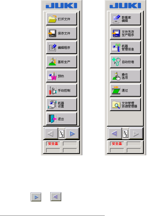 第 1 部 基本篇 第 1 章 设备概要 (2) 用命令按钮选择 在画面左侧出现命令按钮时 , 可按下该按钮来执行命令。 选择命令按钮的方法有以下两种。 :用轨迹球选择。 :在触摸面板 ( 选购项 ) 上选择。 ■ 以下以“桌面”的命令按钮为例进行说明。 “桌面”的命令有下列按钮。 图 1-3-3-1-6 桌面画面的命令按钮图 按下各命令按钮后 , 便可切换、或显示相应的应用程序画面。 命令按钮有 8 种菜单命令 , 共 2 页…