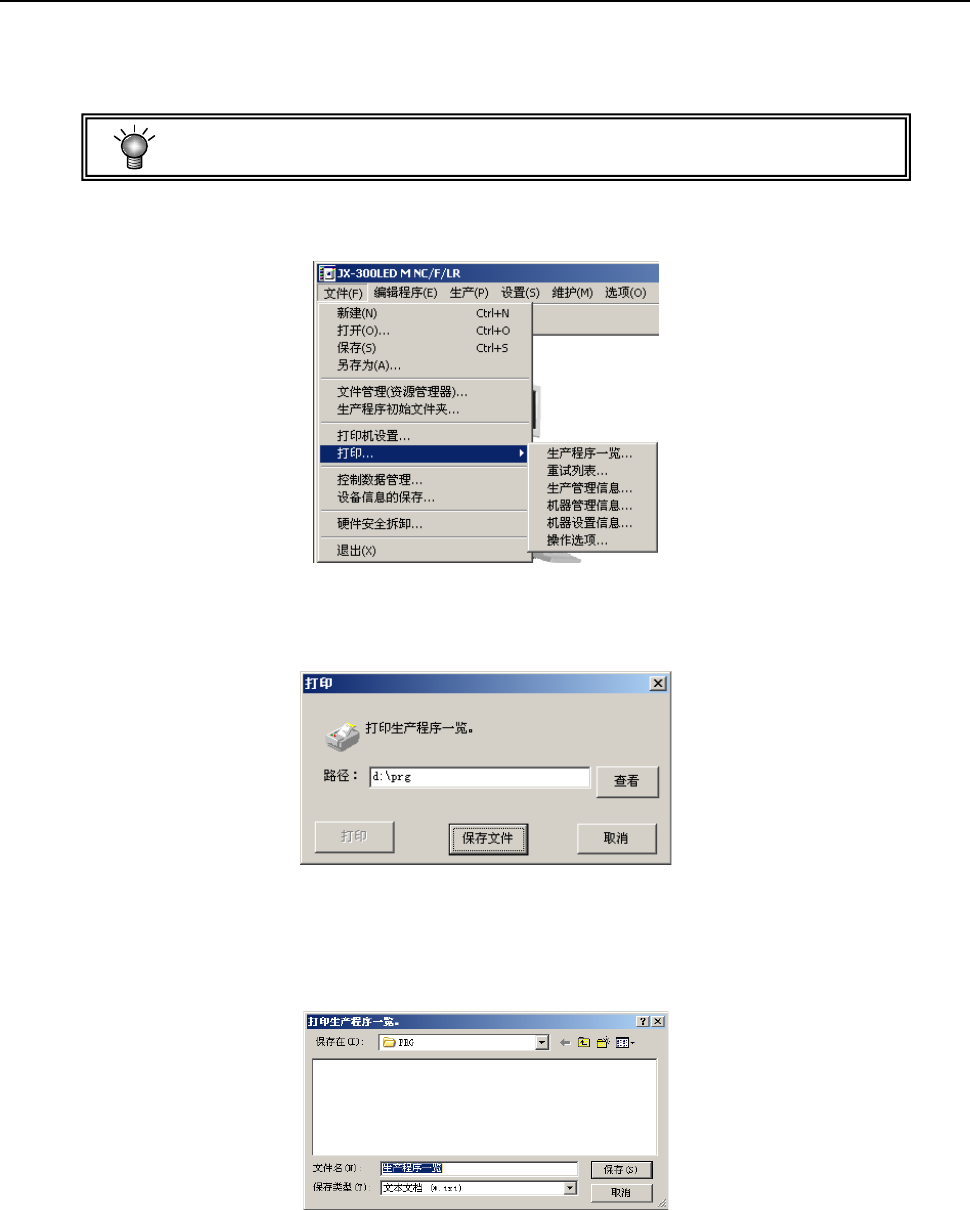 可打印“生产程序一览”,“重试列表”,“生产管理信息”,“机器管理信息”,“机器设置信息”,“操作选项”