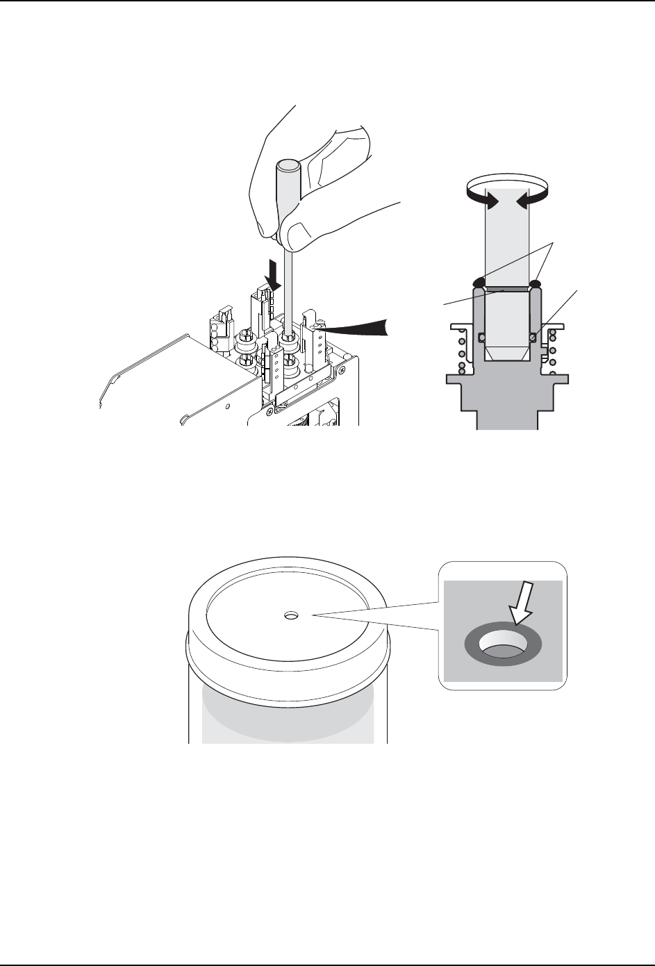 d. 将杆插入升降杆内。插入至杆上的刻度槽为止。之后,轻轻转动,将润滑油涂敷到 O