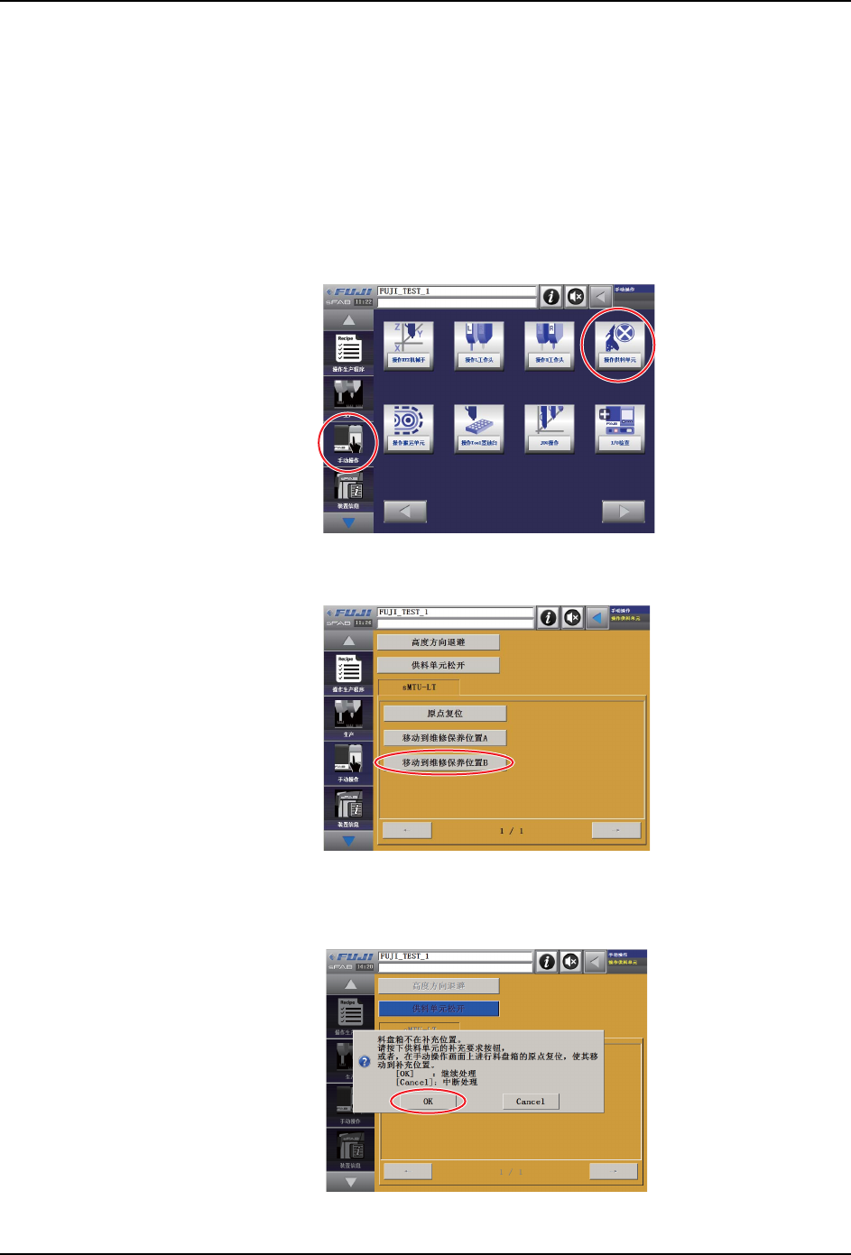 2. 按照操作画面中的 「手动操作」→ 「供应单元操作」的顺序点击画面上的图标。显示
