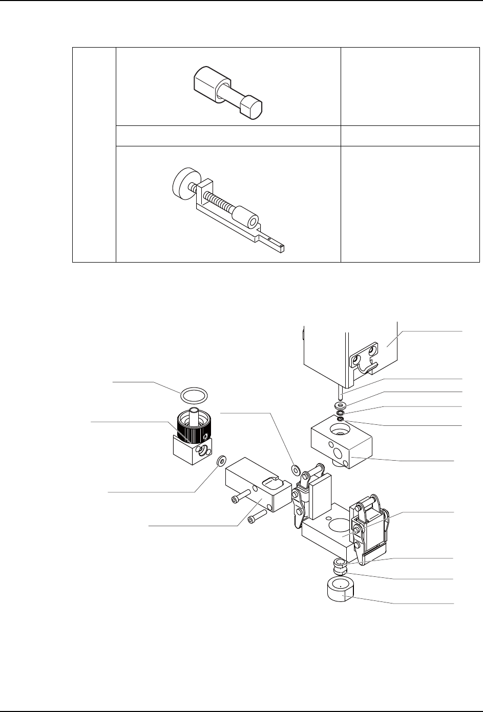 6. 更换损耗品 MEC-SFAB-005S0 142 SmartFAB 机械手册 6.7 sJD 工作头接液部 6.7.1 更换周期 零部件名 概观 症状 更换参 考 活塞杆 密封件 液 体 的 密 封 不 良 时 2~3千 万 SHOT 吸嘴 不能达到目标量的调整时 液剂堵塞时 确认了针顶端部的缺损或弯曲 时 1~2亿 SHOT 阀座 不能达到目标量的调整时 发现了从吸嘴顶端漏液时 喷出稳定性下降时 1~2亿 SHOT 气缸 密封件…