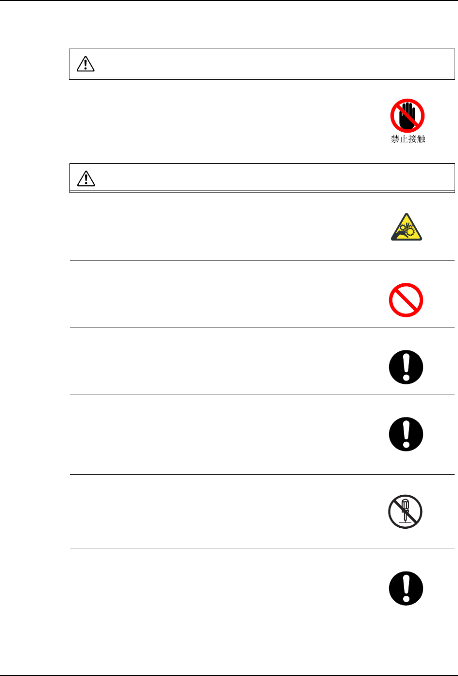 具体的警告内容表示在标记内部。( 左图的示例表示禁止接触。)