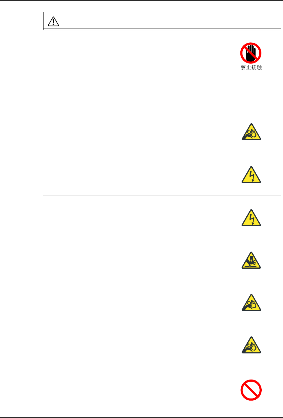 ·手或身体有可能被卷入机器而受伤。