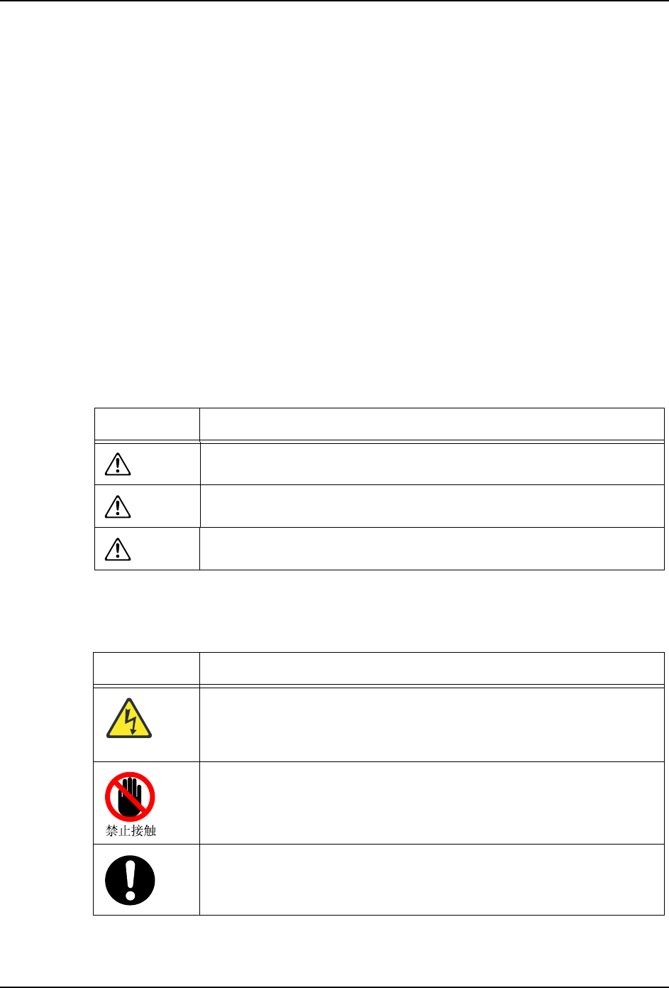 在本手册及产品上的警告标签的注意事项中使用了危险度的定义 ( 危险度的大小 ) 以及图标