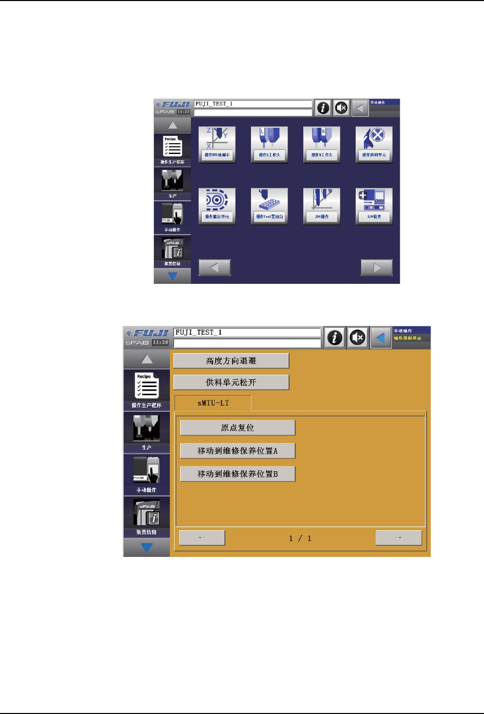 1. 请按照操作画面上的 「手动操作」→ 「操作供料单元」顺序点击图标。