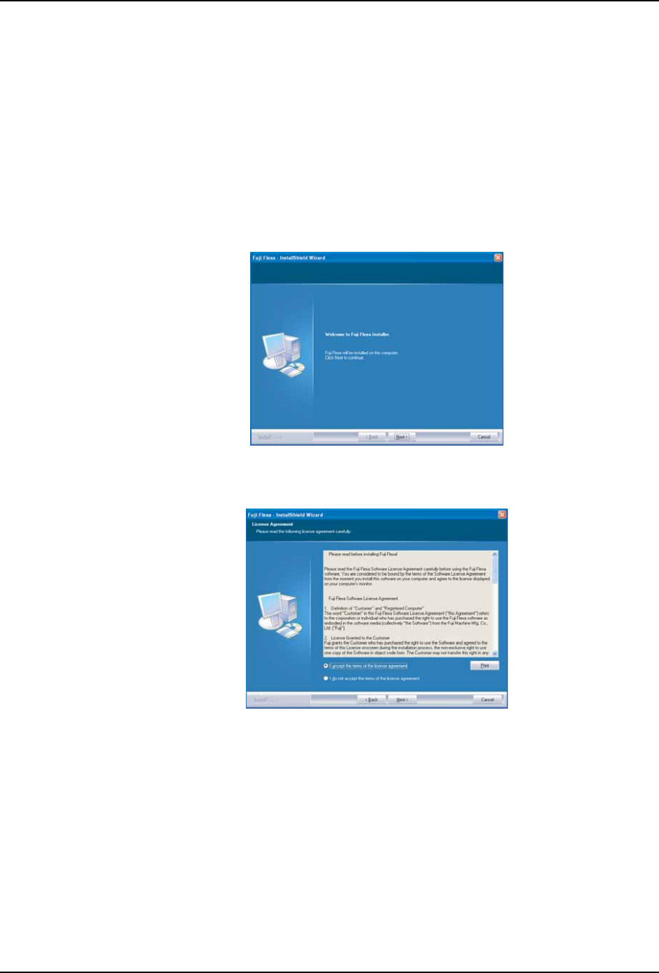 2. 在同意 Fuji Flexa 的产品使用许诺契约之后,单击 [ 下一步 ]。