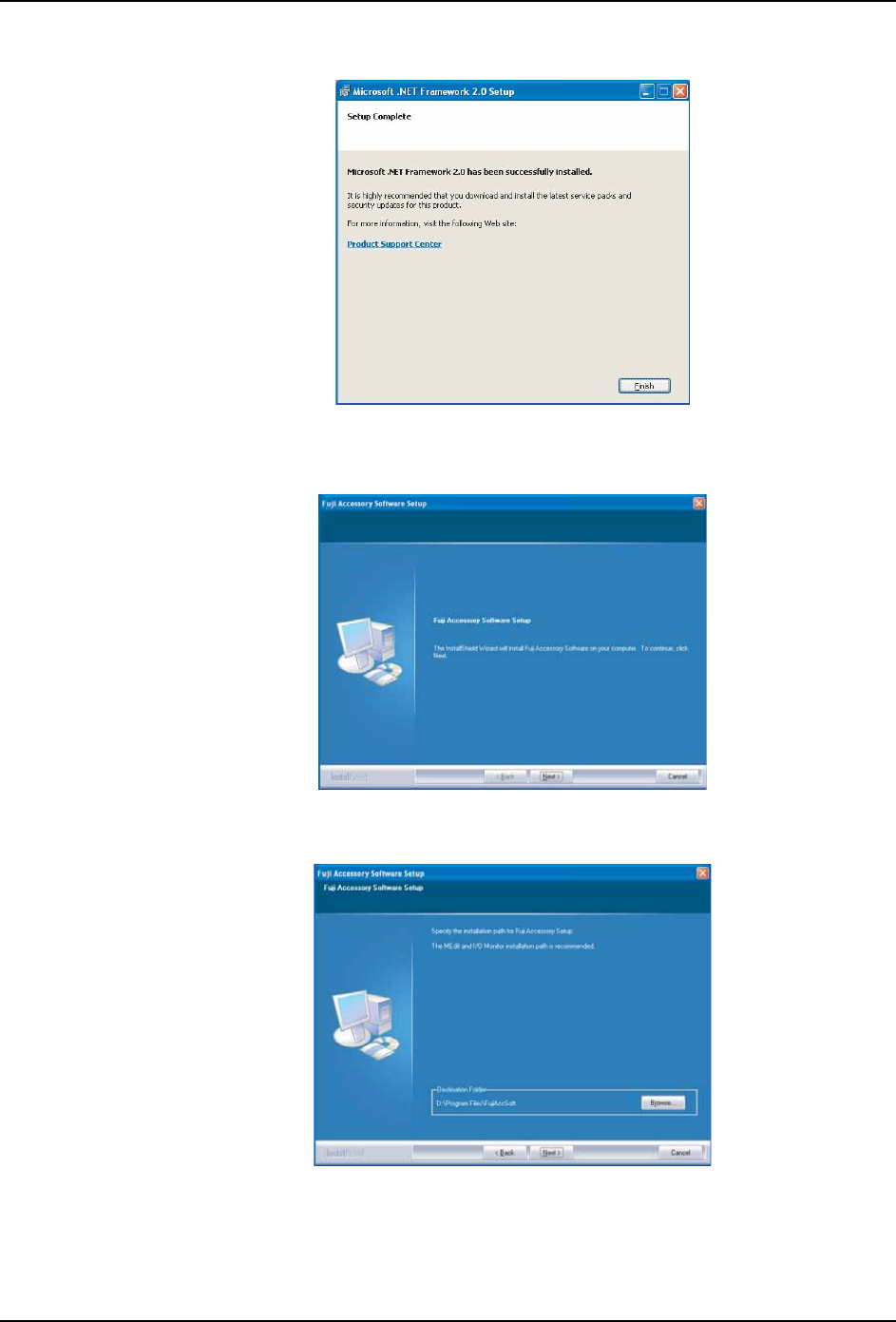 SET-NXT3-006S1 5. 安装 Fuji 附加软件 NXT III 安装手册 101 b. 显示出 Microsoft .NE T Framework 2.0 安装完成画面后,单击 [ 完成 ]。 5. 显示出 Fuji 附件软件的开始安装开始画面 。单击 [ 下一步 ]。 6. 指定安装目的地的文件夹,单击 [ 下一步 ]。 01SET -0220E 01SET-0221E 01SET-0222-2E