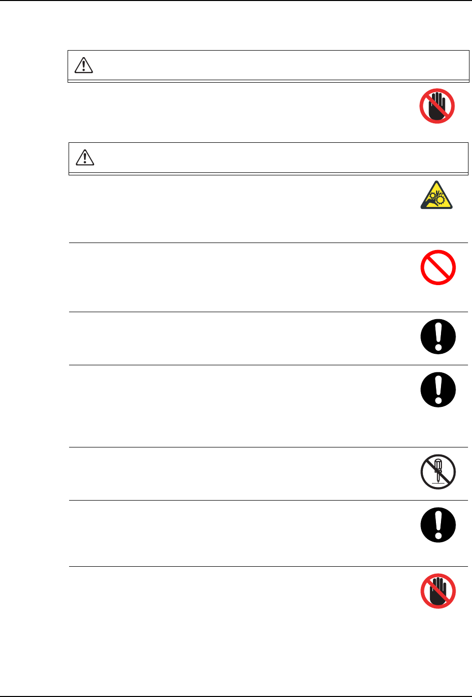 ·如果不使用拉手开闭安全门、防护罩和防护栏,手有可能被挤压而受伤。