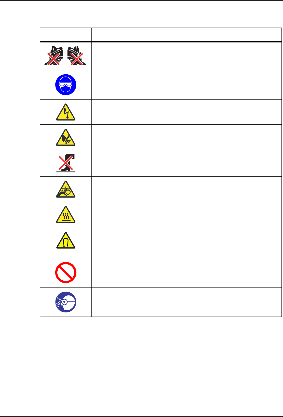 SET-NXT3-006S1 1. 安全指南 NXT III 安装手册 23 1.5 其他注意事项 1.5.1 机器使用注意事项 当传感器被拆除或处于无效状 态时,请不要开动机器。 ·由于联锁功能无法正常工作,所以 会引起机器内部相互碰撞而损坏机 器。 接触电路板时请配戴防静电带 。 ·有可能破坏电路板。 ·请将防静电带接在 (EARTH BONDING POINT)接口上。 用手移动贴装工作头时,请不 要用手按住定位相机单元。 ·可能…
