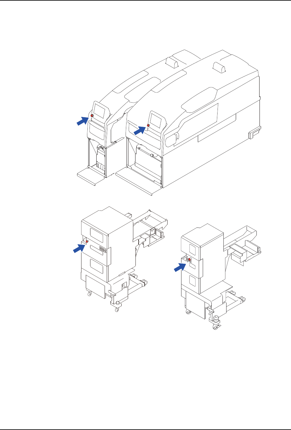 SET-NXT3-006S1 1. 安全指南 NXT III 安装手册 25 1.6 紧急停止按钮 发生紧急情况时, 请按下机器上红色的紧急停止按钮停止 机器的运转。 紧急停止按钮的位置 请参考下图。 01SYS-0638