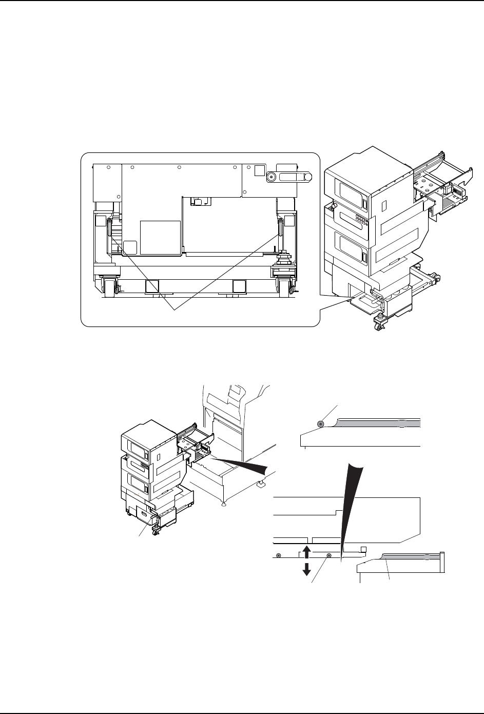 该作业需要使用水平仪 (2 个)。首先,在从机器本体上拆下了料盘单元 -LT 的状态下,预