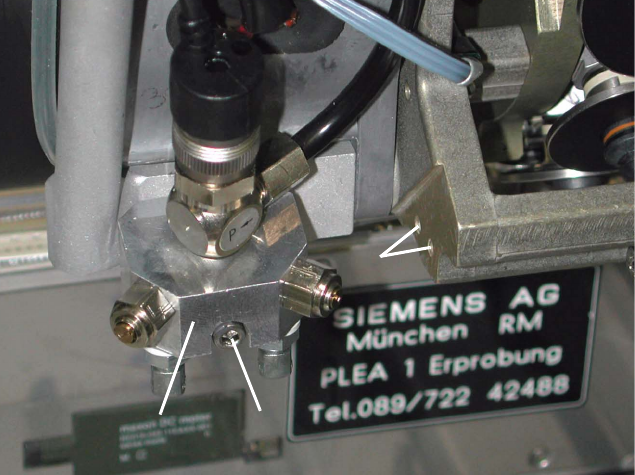 Abb. 1.6.2 Befestigung der Blaslufteinheit lösen, Montagebohrungen für Sensor