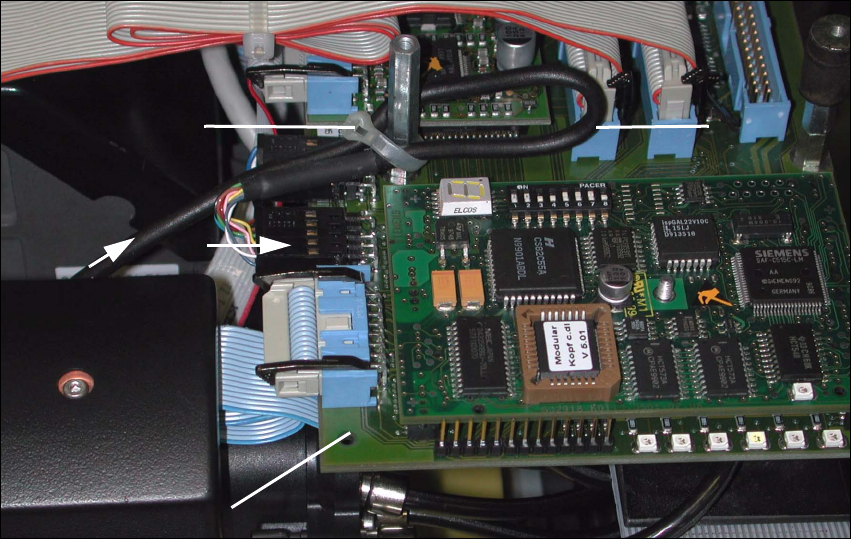 Abb. 1.6.7 S-25 HM, modulare Kopfplatine: Detail Kabelbefestigung und Steckverbindung