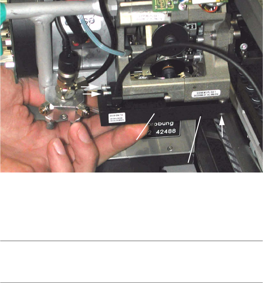 2 Assembly Instructions: Component Sensor (Opti on) for RV12-DLM1 Placement Head SIPLACE S-25 HM 2.6 Work Sequence 04/2007 Edition 36 : If a head crash protection unit has been inst alled, fold it down now . : Make certa…
