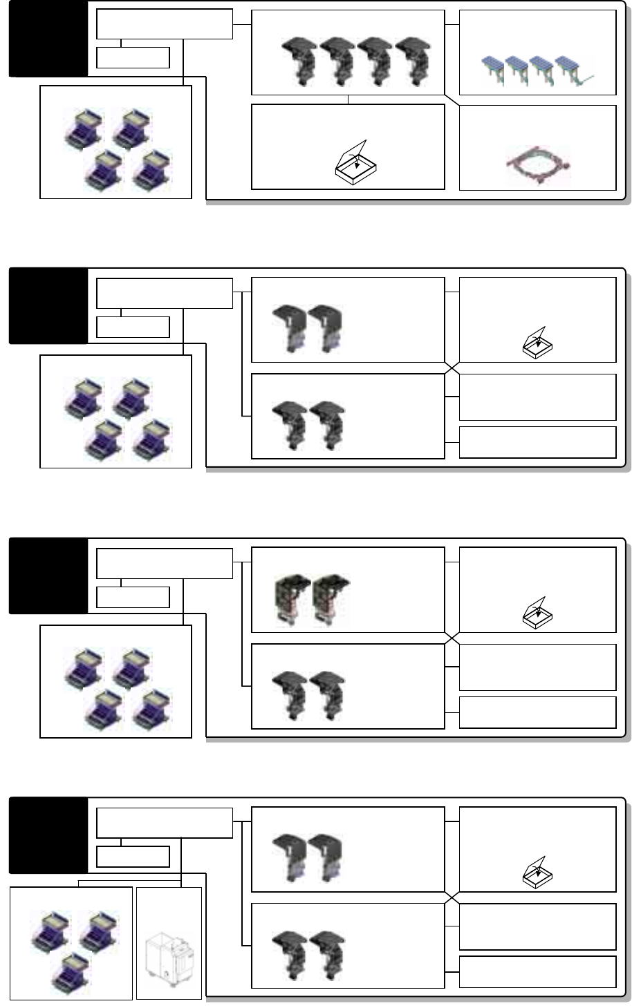 CM602-L 2006.0515 - 38 - Ty pe A-0 Nozz le case × 2 (For High Speed head) High Speed h ead (8 noz zles) × 4 Main bod y Acces sorie s Feeder cart × 4 Line camera × 4 7. Standard Machi ne Configurati on There ar e six t yp…
