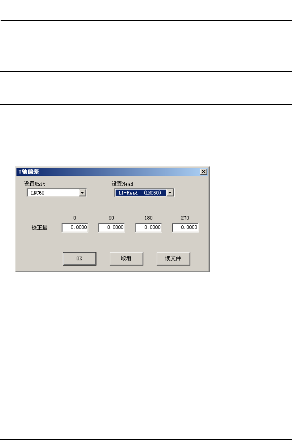 选择了[偏差设置(O)][T轴偏差(G)...]之后,显示下图所示的T轴偏差设定界面。