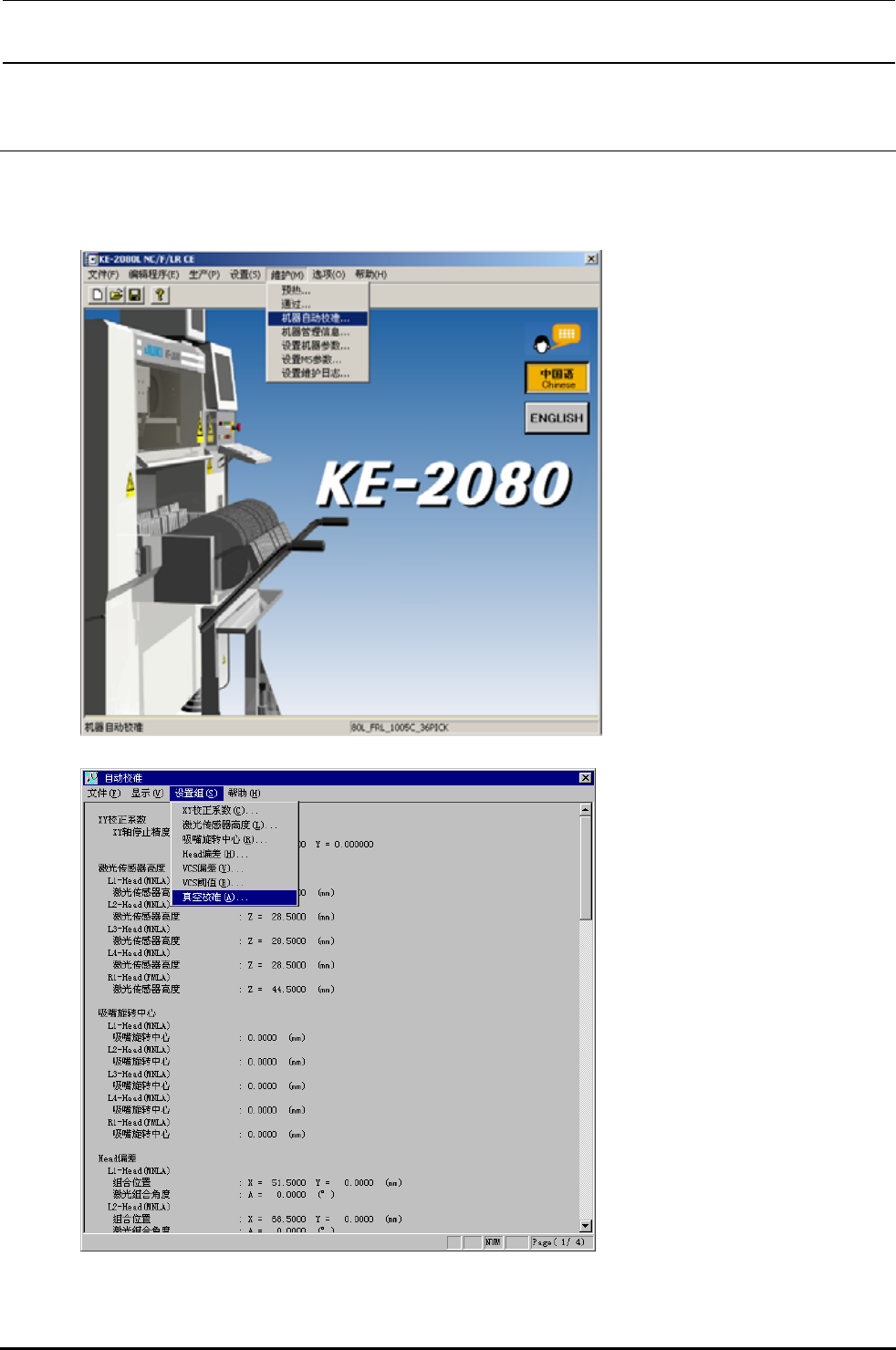请选择维修 → 自我校准、设定组 → 真空校准。