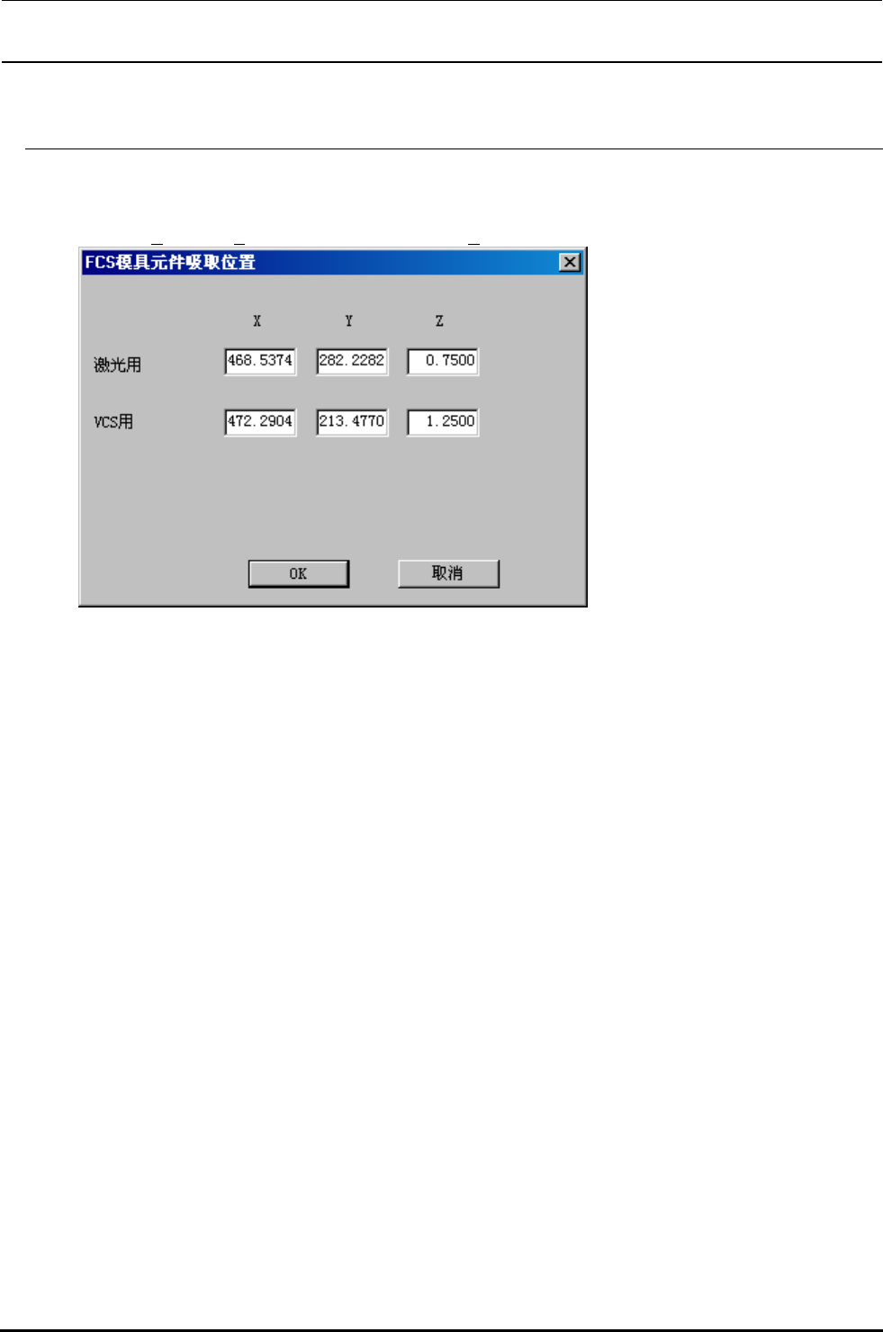 FCS 生产时要正确地设置 FCS 模具元件吸取位置的情况下使用。