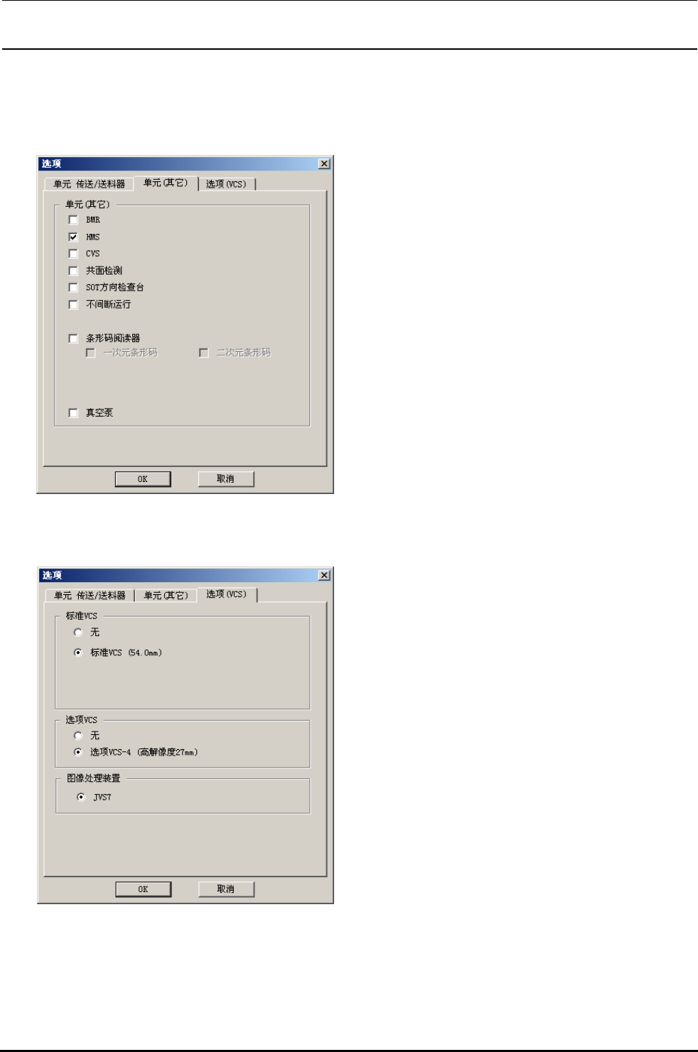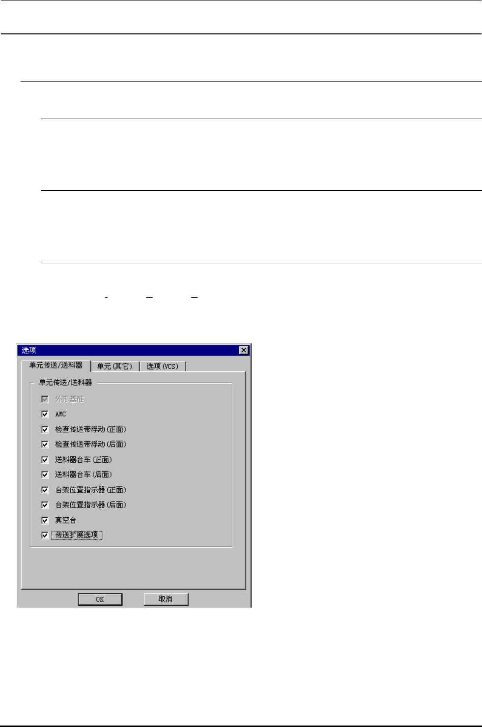 Rev.1.0c MS 参数 3−5−3−2. 单元 ( 其它 ) 选择了单元(其它)之后,下列的画面被显示出来。 安装的单元变更为未安装之后,机器设 置的 使用单元 对应的装置自动地变成 不使用 。 追加单元等由未安装变更未安装之后, 机器设置的 使用单元 对应的装置自动 地变更 使用 。 3−5−3−3.VCS 选择了 VCS( 选购 ) 之后,下列画面显示出来 。 用黑点选择安装的单元 。 把安装的单元…