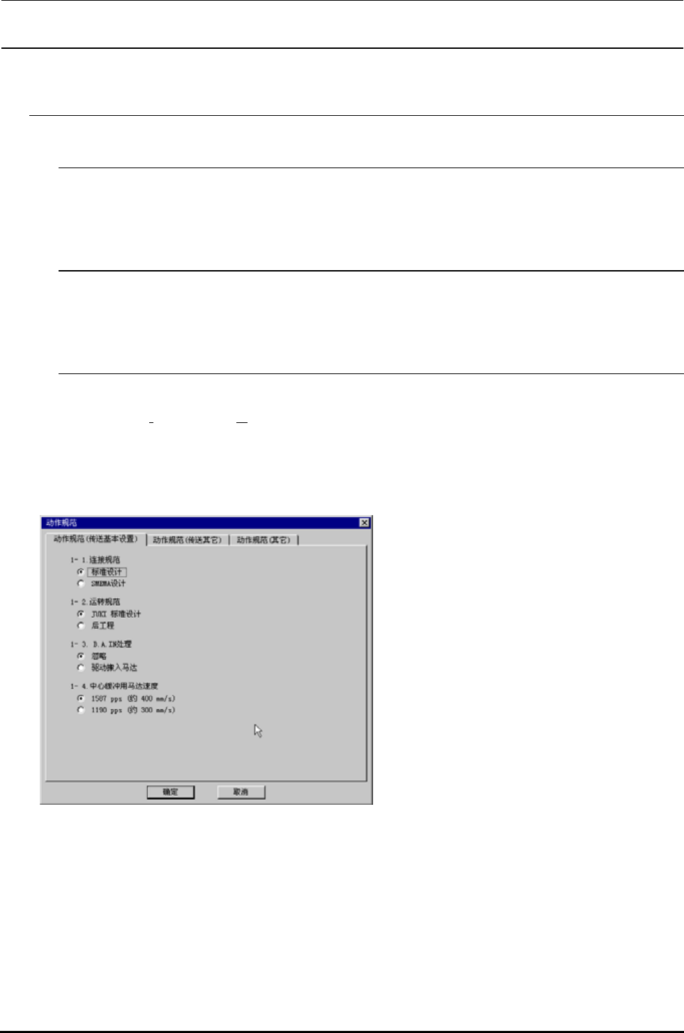 I)][动作规格(S)...]之后,下面的画面显示出来。各项目请用黑点选择动作规范。