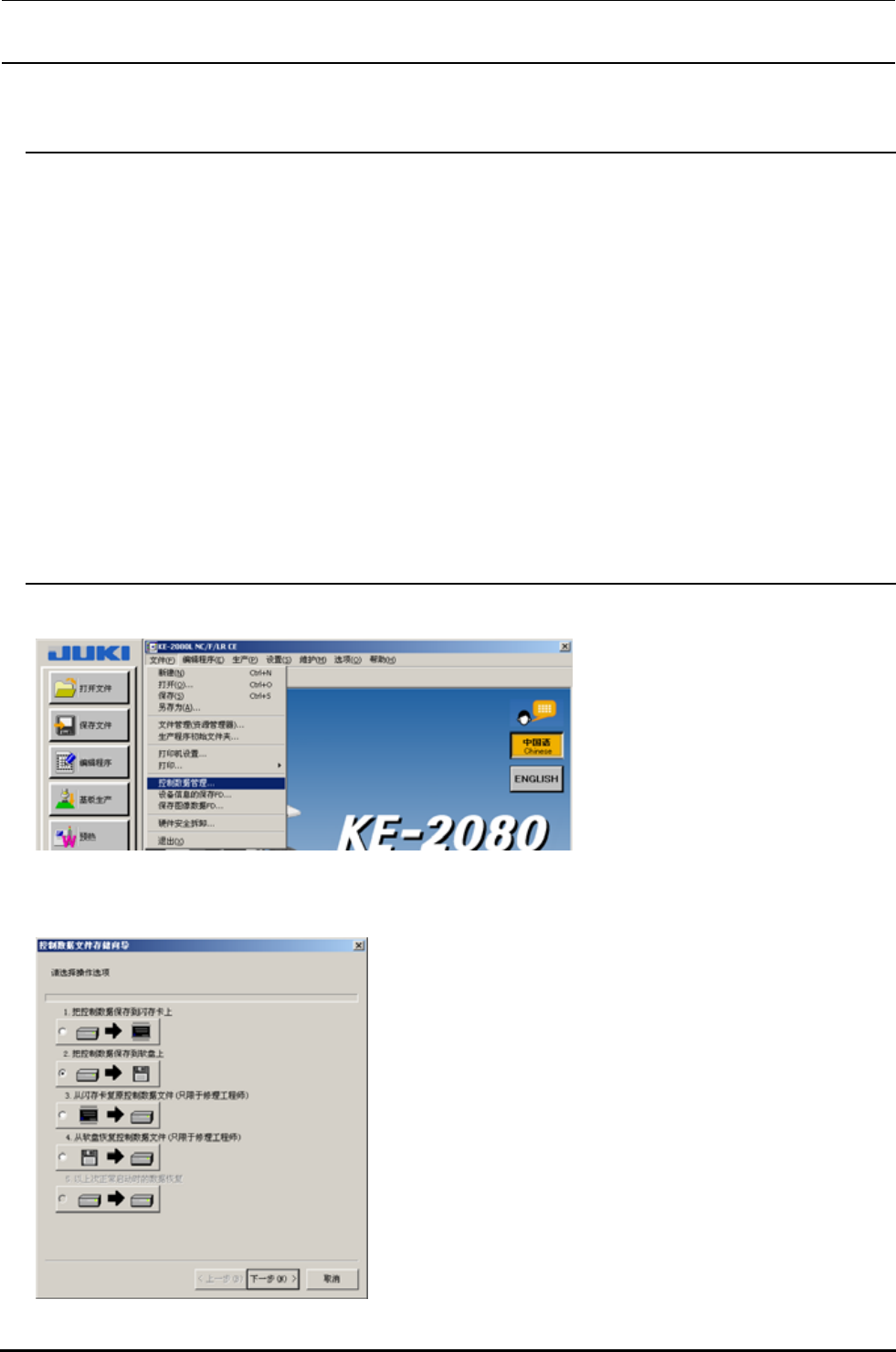 ② 控制数据文件存储想到被显示出来。这时、请选择「2.把控制数据保存到软盘上。」、然后选择下一步