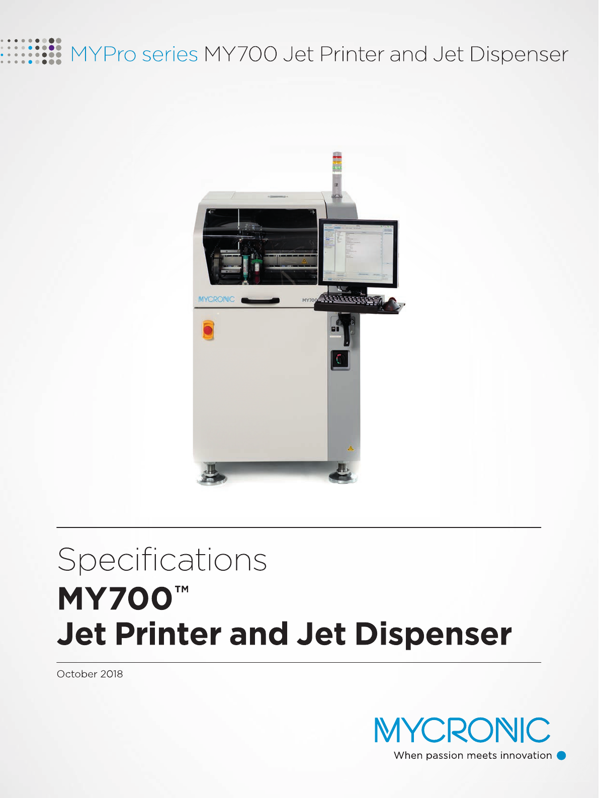 MYP r o s e ri e s M Y 7 0 0 J e t P r i n t e r a n d J e t D i s p e n s e r Sp ecifi c a t ions M Y 70 0 ™ Je t Pr int er and Je t Di spens er Octobe r 2018 MYP r o s e ri e s M Y 7 0 0 J e t P r i n t e r a n d J e t …