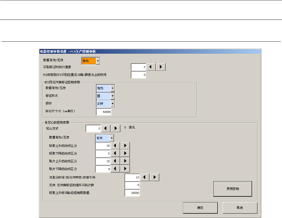 Rev 4 .0 机器控制参数 2-5-23-1 设定项目 No. 项目 输入范围 单位 备考 最小值 最大值 1 数据有効 / 无效 0: 无效 1: 有効 ( 初期值 ) ※ 1 2 识别标记时的 XY 速度 0 5 初期值 : 2 3 FCS 用元件侧 标记控制参 数 数据有効 / 无效 0: 无效 1: 有効 ( 初期值 ) ※ 2 4 标记形状 0: 圆 ( 初期值 ) 5 极性 0: 正转 ( 初期值 ) 1: 反转 6 标…