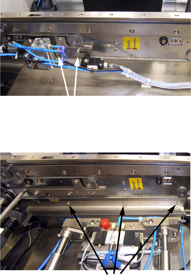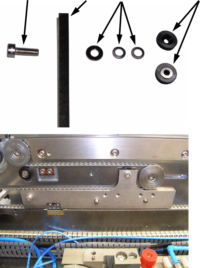 : To mount the adapter to the conveyor, use the delivered screws, shims and the removed spa-