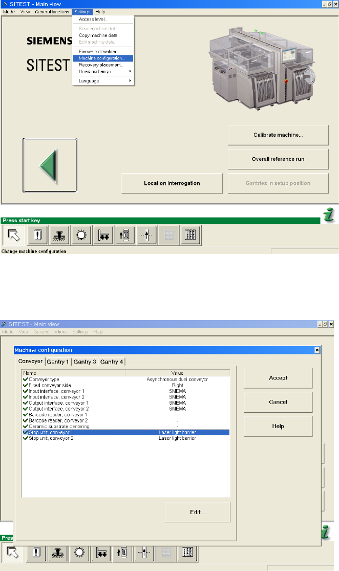 : Switch to SITEST and choose “Settings” -> “Machine configuration”.