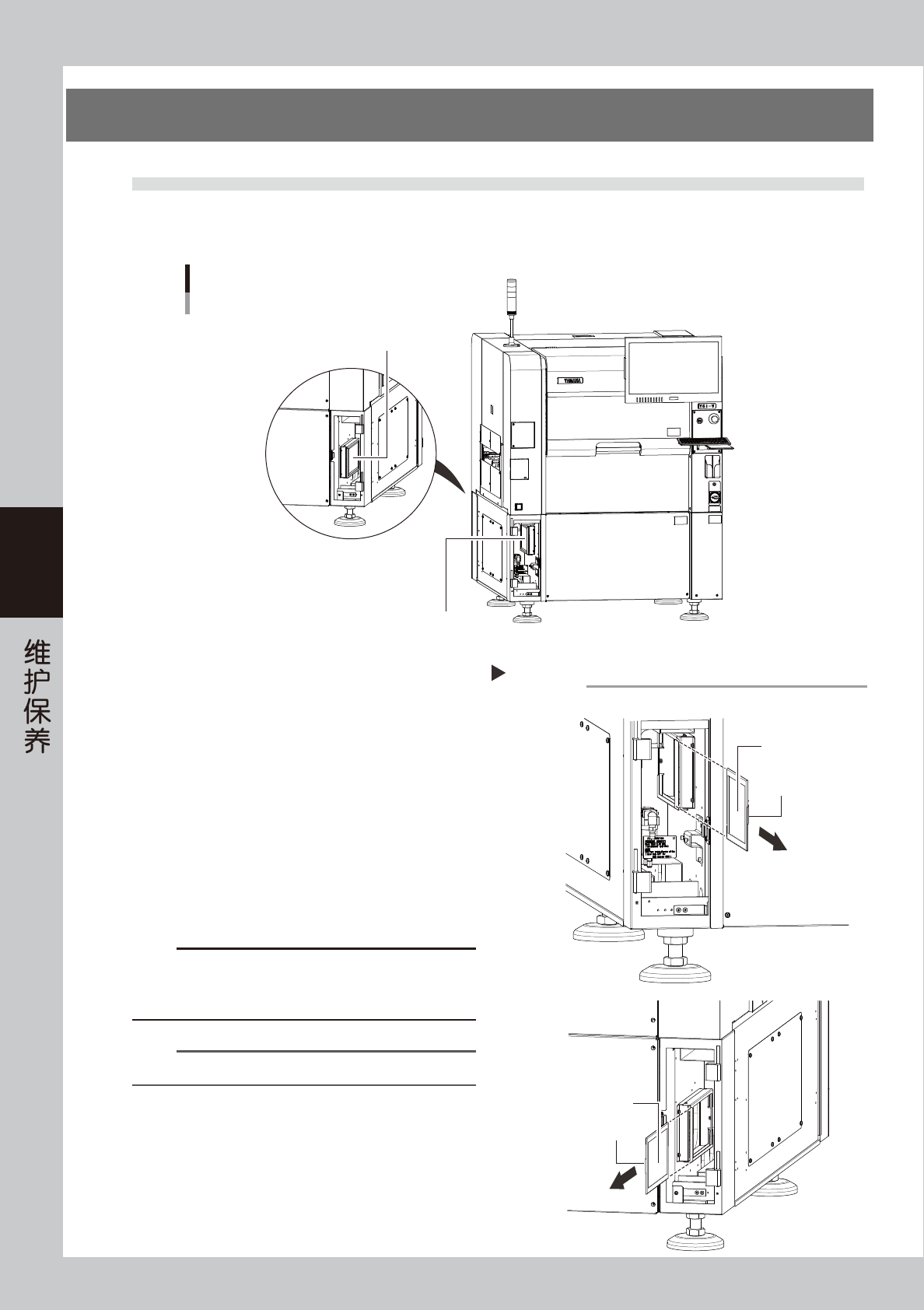 4-18 4 6. 3 个月 6.1 吸气扇部过滤网的清洁 不定期清洁过滤网,会导致网眼被堵塞,引起检查机内部的温度上升。这将导致检查机性能下降并缩短使用寿命。 因此,务必定期清洁过滤网。需要清洁的过滤网只有 1 种,安装在下图所示的 2 处位置。 过滤网的安装位置 检查机正面 过滤网 检查机背面 过滤网 55415-M9-00 ■ 过滤网的清洁 1 进行作业前的准备。 1. 切断检查机的电源,打开盖板。 2. 准备吸尘器。 2 …