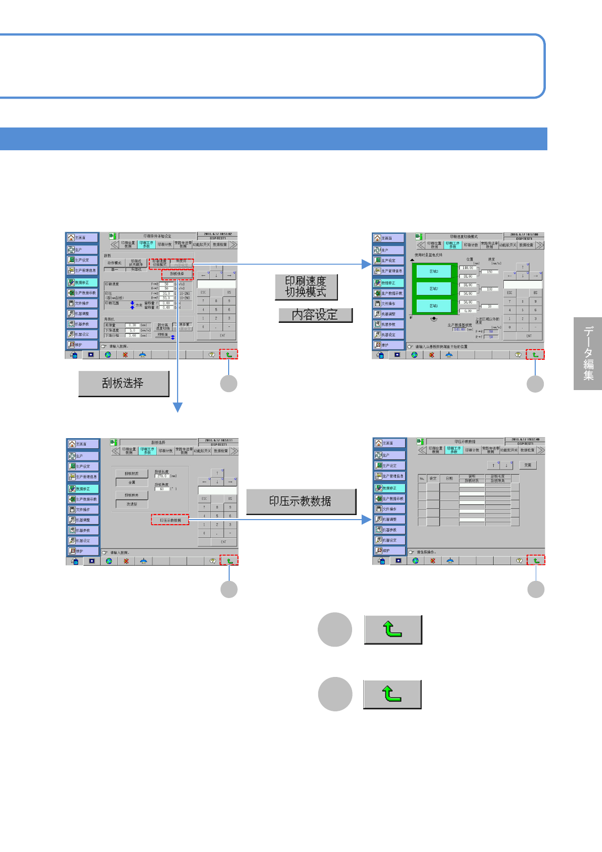 ■「选择刮刀」画面 ■「印压示教数据」画面