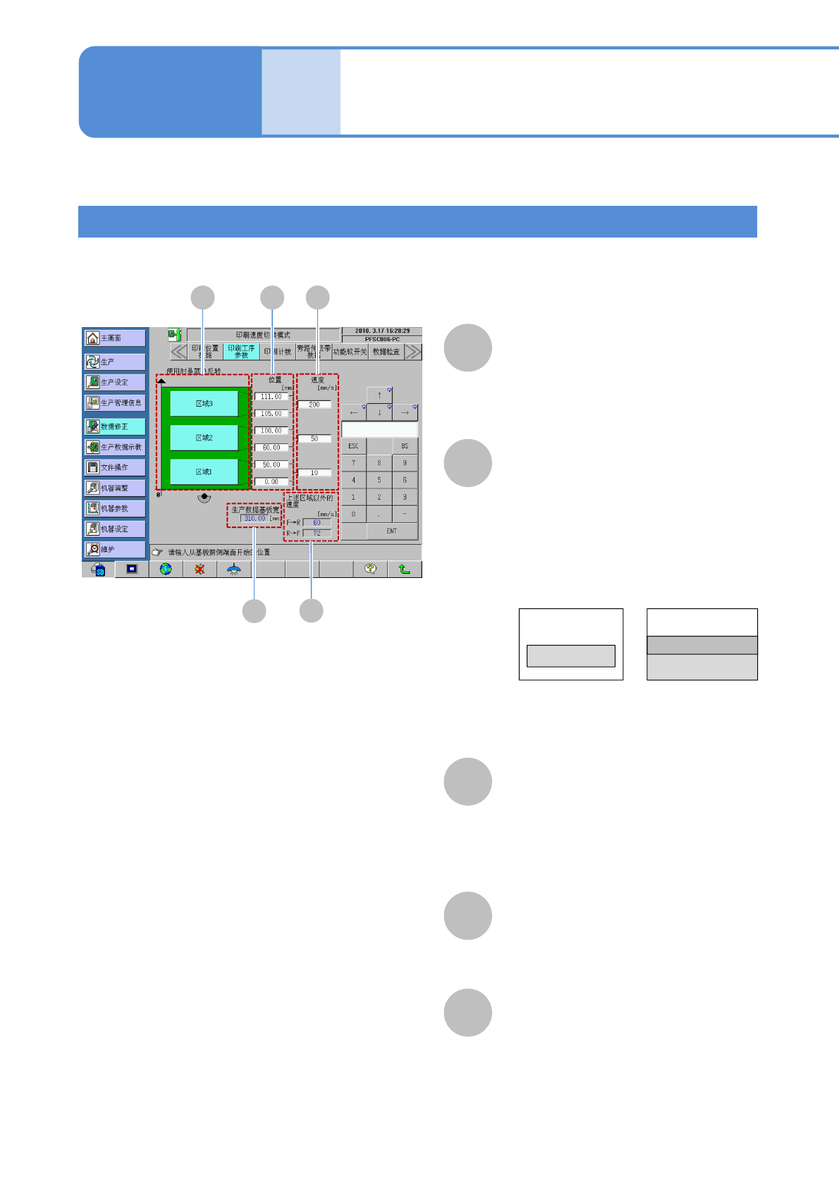 输入各区域的印刷速度。