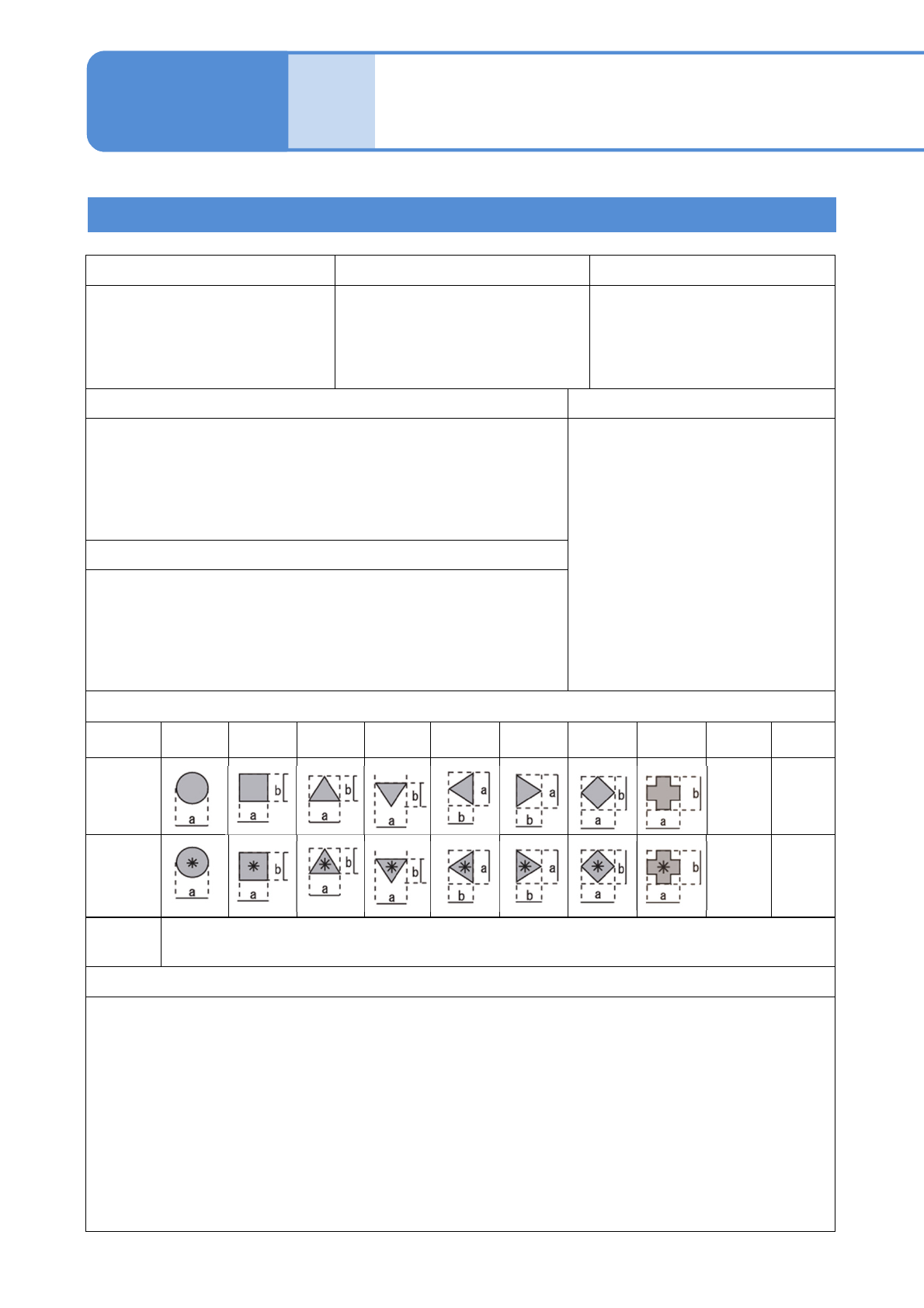 •形状的a, b, c, d是表示,标记尺寸的输入范围。