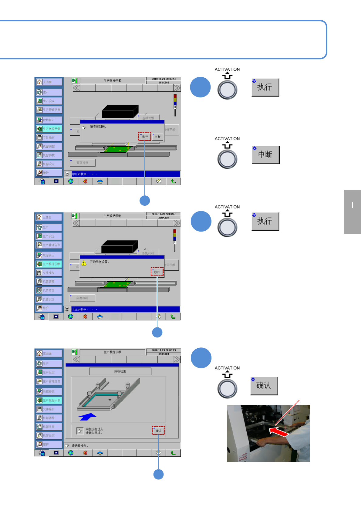SPG EJP6AC-MB-0 4OM-01 数 据 编 辑 3 3 + 4 4 + ■结束印压示教时 + 5 + 按下网板,直到与挡板相接触。 5 4-2-7 -2 网板 开始安装刮刀。 开始设置网板。