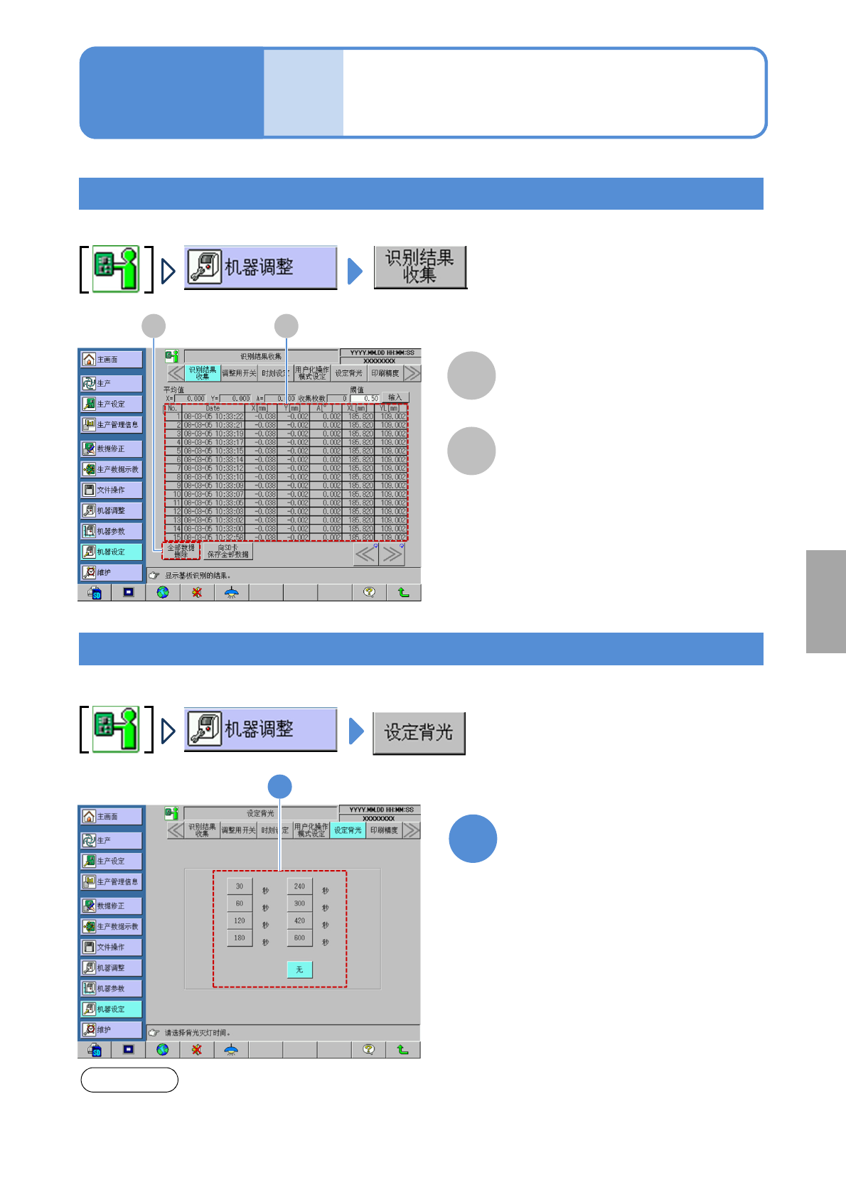 识别结果収集/背照灯设定