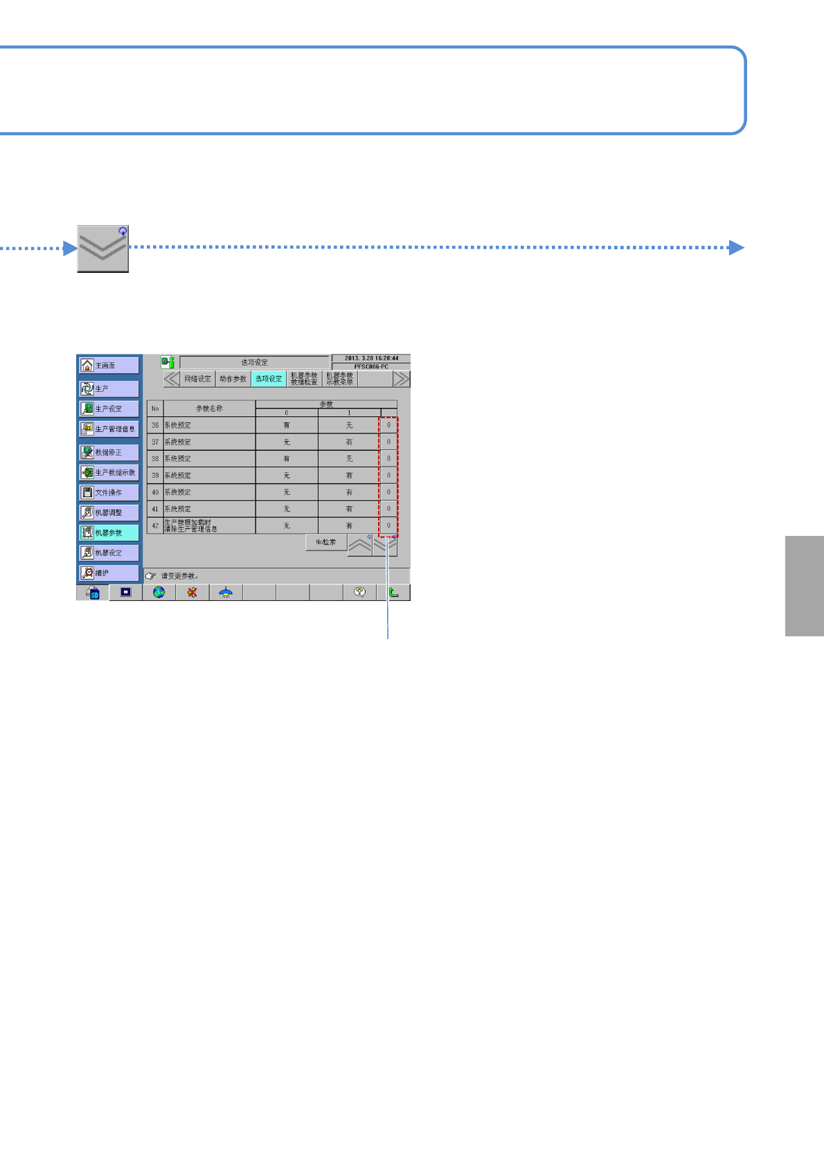 SPG EJP6AJ -MB-05OM- 02 29. 刮板漏装检查 在印刷动作前 , 通过设定为有效还是无效 , 来确认是 否安装了刮刀。 5-3-7 -5 点击选择 35. 防止基板掉落金属片 OFF 基板定位动作时 , 选择防 止基板落下的单元是 否动作。 31. 干式清扫后的往复印刷 生产中在清洁动作后的印刷动作中 , 选择是否进行往 返印刷。 32. 印压监控功能 印刷动作时 , 通过设定为有效还是无效 , 来确认刮刀 印压是…