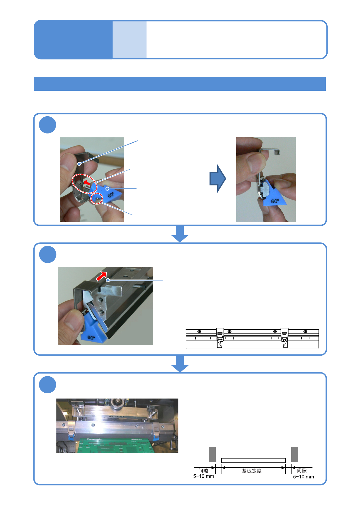 ●调整块时,应比基板宽度要稍微宽
