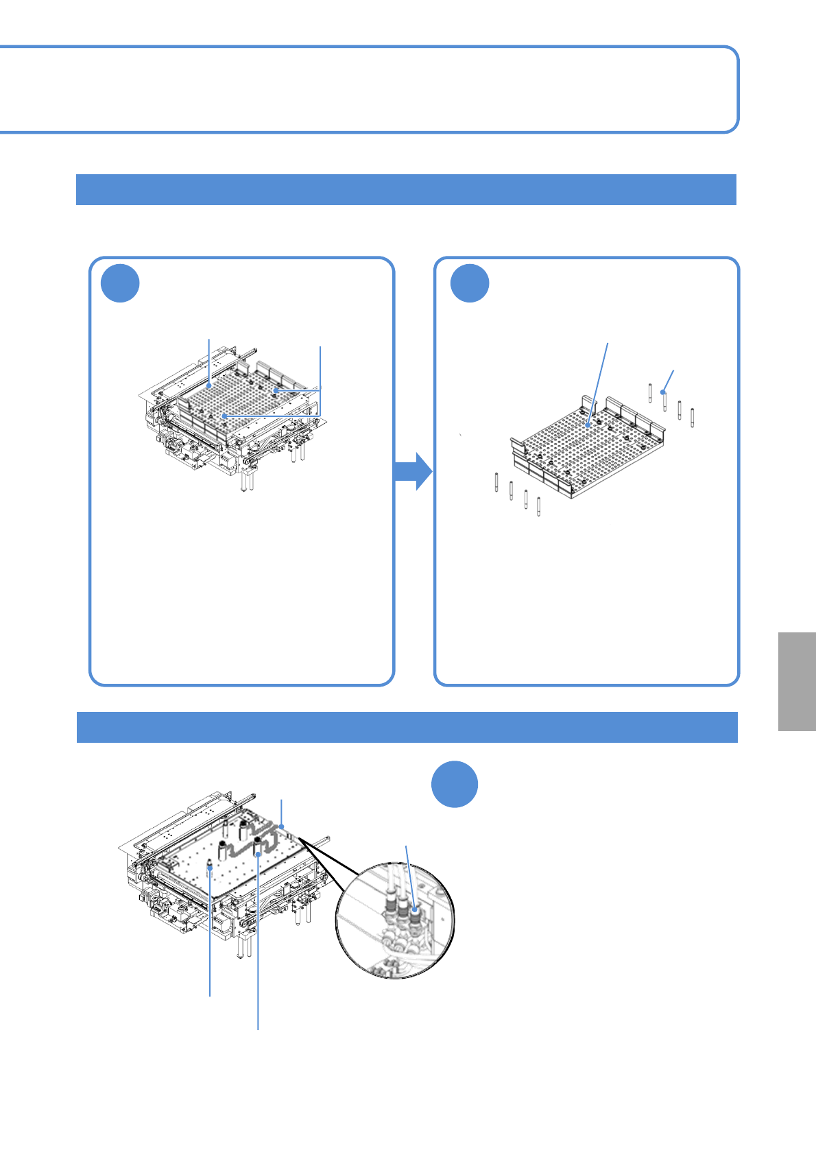 SPG EJP6AJ -MB-06OM- 02 基板吸着箱 基板吸着板 选购件 基板支撑单元的安装 基板支撑块/基板吸着支撑块 基板支撑单元有 6 种。根据基板的种类 , 来安装适合的支 撑单元。 基板 ( 吸着 ) 基板支撑块 螺栓 1 6-1-3 -1 操作篇 6-1-3 安装该当机种的专用箱 基板吸着箱 1 管 连接 管 连接 根据基板尺寸 , 安装需要数量 基板通过托板式的块状来支撑。用于单面实装的基 板。 ■基板支撑块 ■基板…