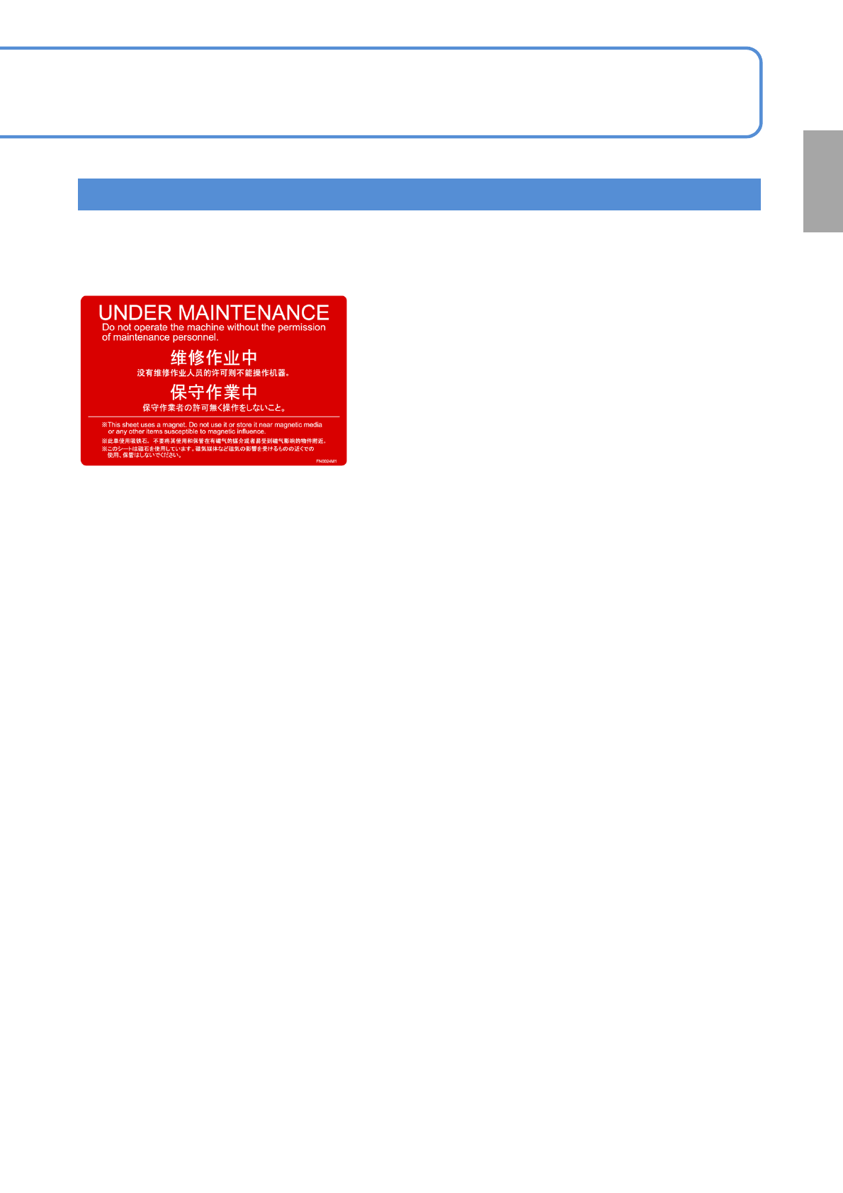 维修保养作业前,请把同捆的注意牌 (下图) 粘贴在操作屏附近容易看到的地方,以便确保安全。