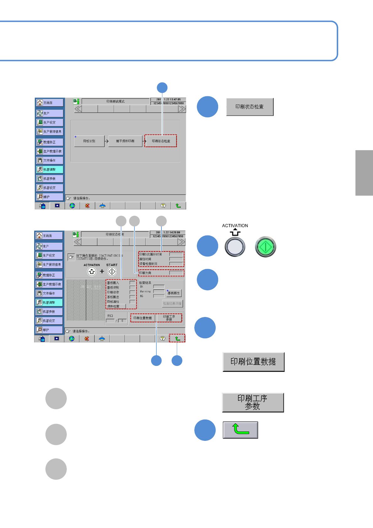 确认从搬入基板到印刷、搬出基板为止的动作。在焊料调和印刷下,进行印压调整和焊料调和。在印刷状态确