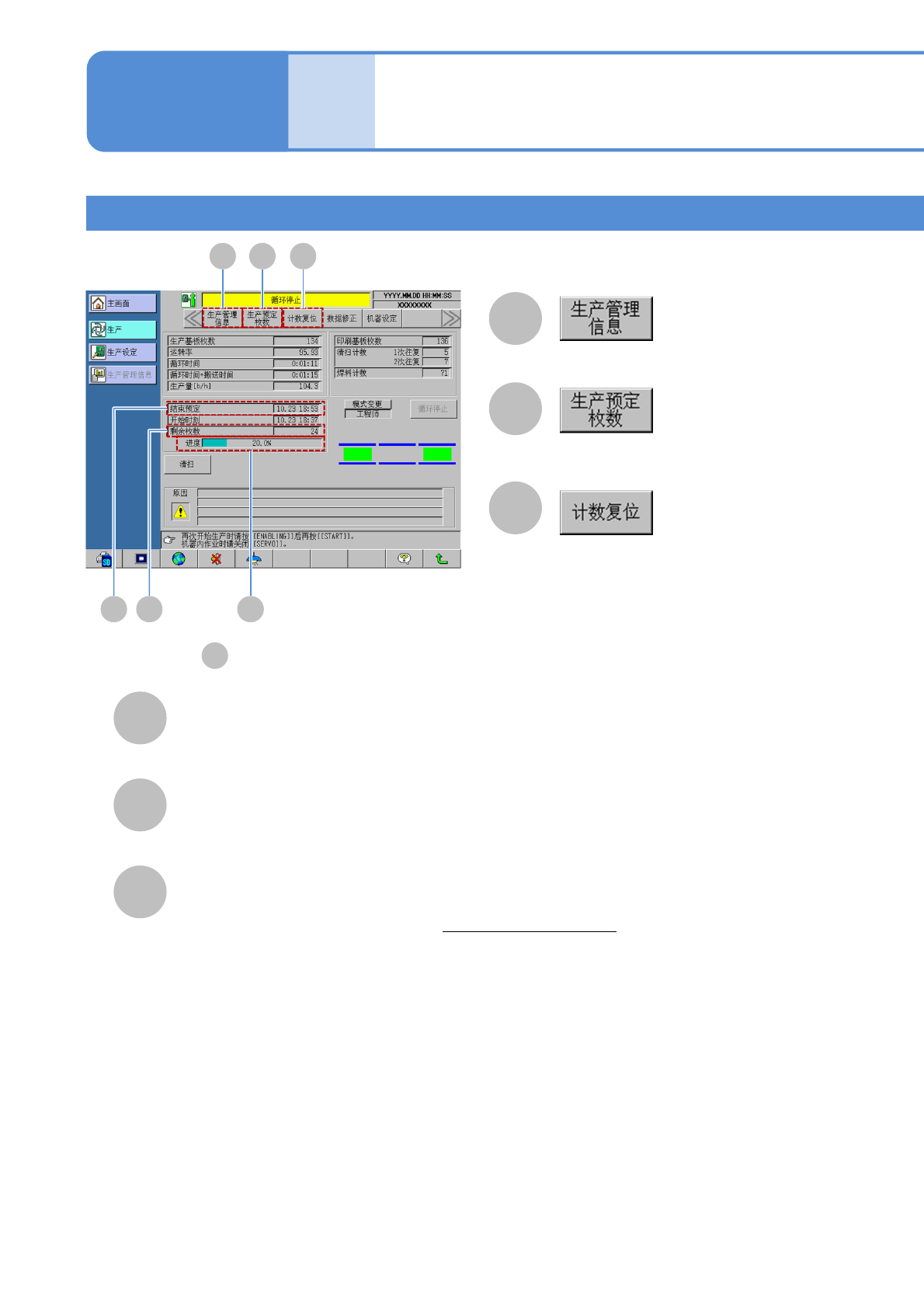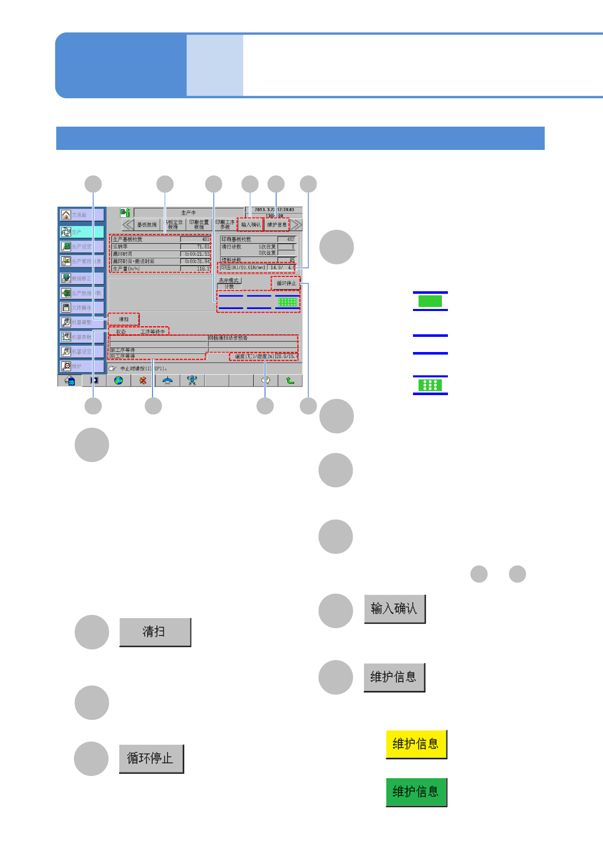 显示生产中、生产信息及运转状況。