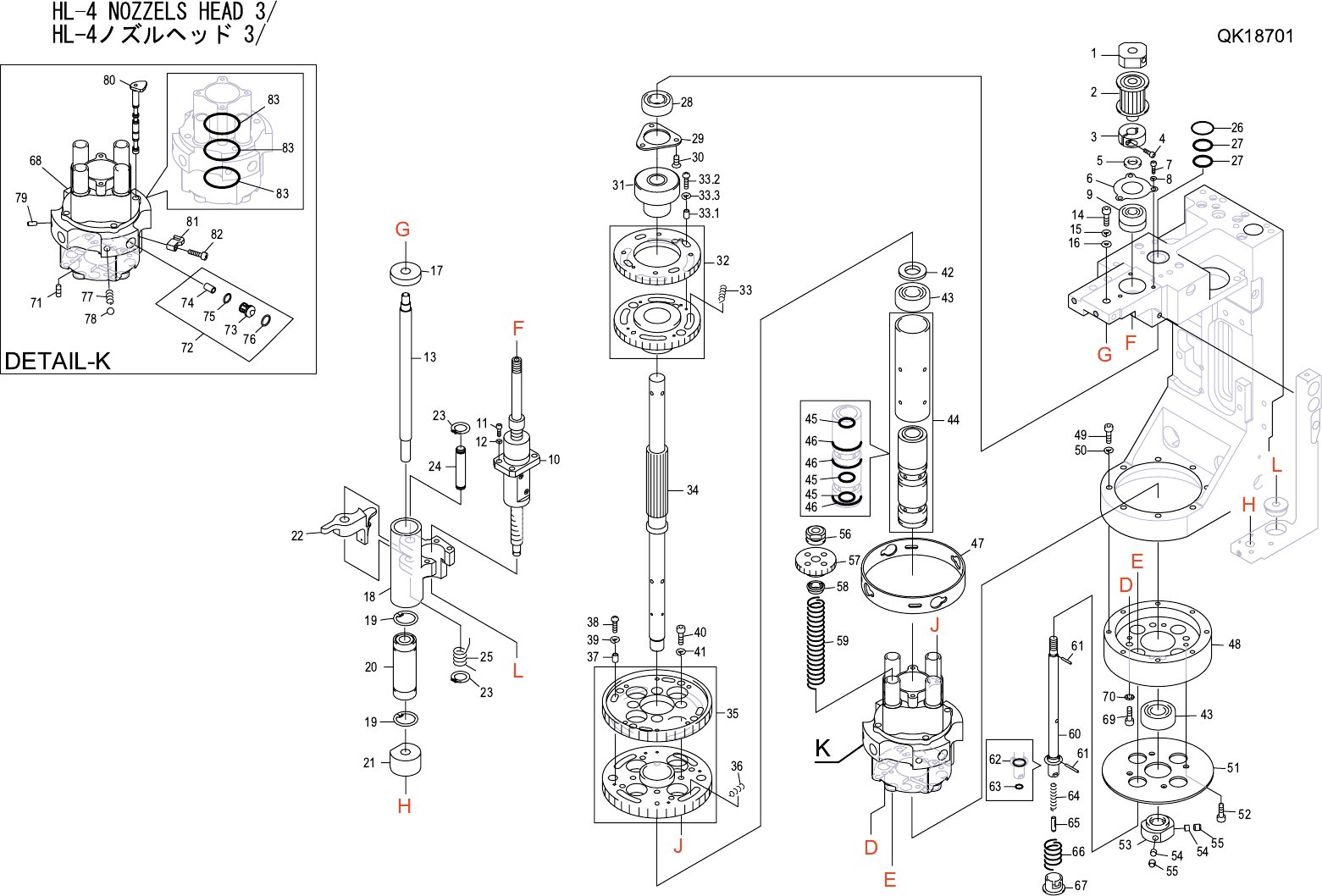HL-4 NOZZELS HEAD 3/ HL-4 ノズルヘッド 3/ QK18701 No. Drg.No. & Code No. QTY Description Rating Materials Remark 番号 図番 & コード番号 個数 品名 規格 材質 備考 1 N1040S 1 NUT, LOCK ナット ロック RN5 FE 2 XP00521 1 PULLEY プーリ OT 3 PM04631 1 C…