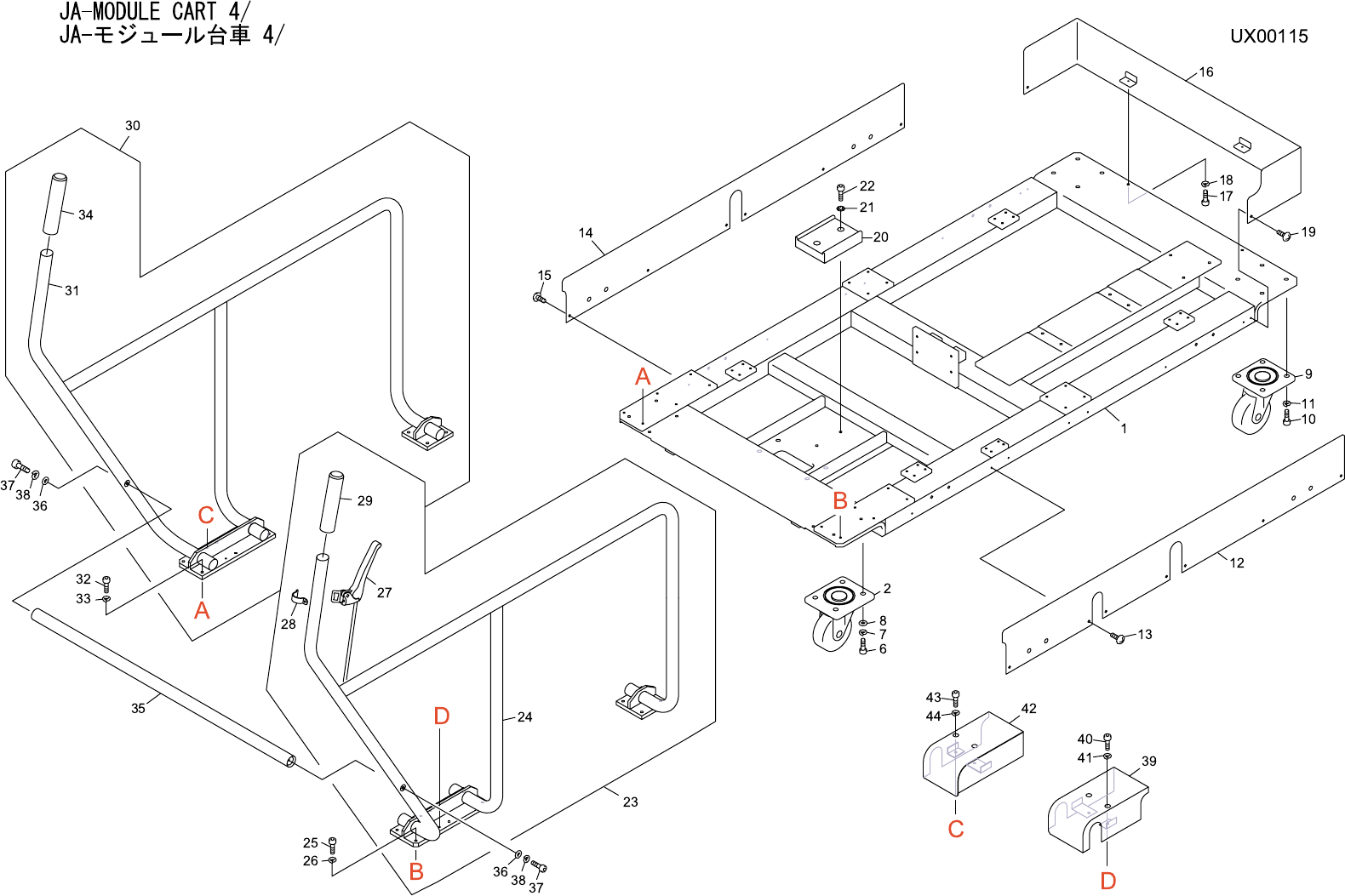 JA-MODULE CART 4/ JA- モジュール台車 4/ UX00115 No. Drg.No. & Code No. QTY Description Rating Materials Remark 番号 図番 & コード番号 個数 品名 規格 材質 備考 1 PM33120 1 FRAME フレーム FE 2 K2180R 2 CASTER, UNIVERSAL キャスタ 自在 キャスタ 自在 LH-GSPO…