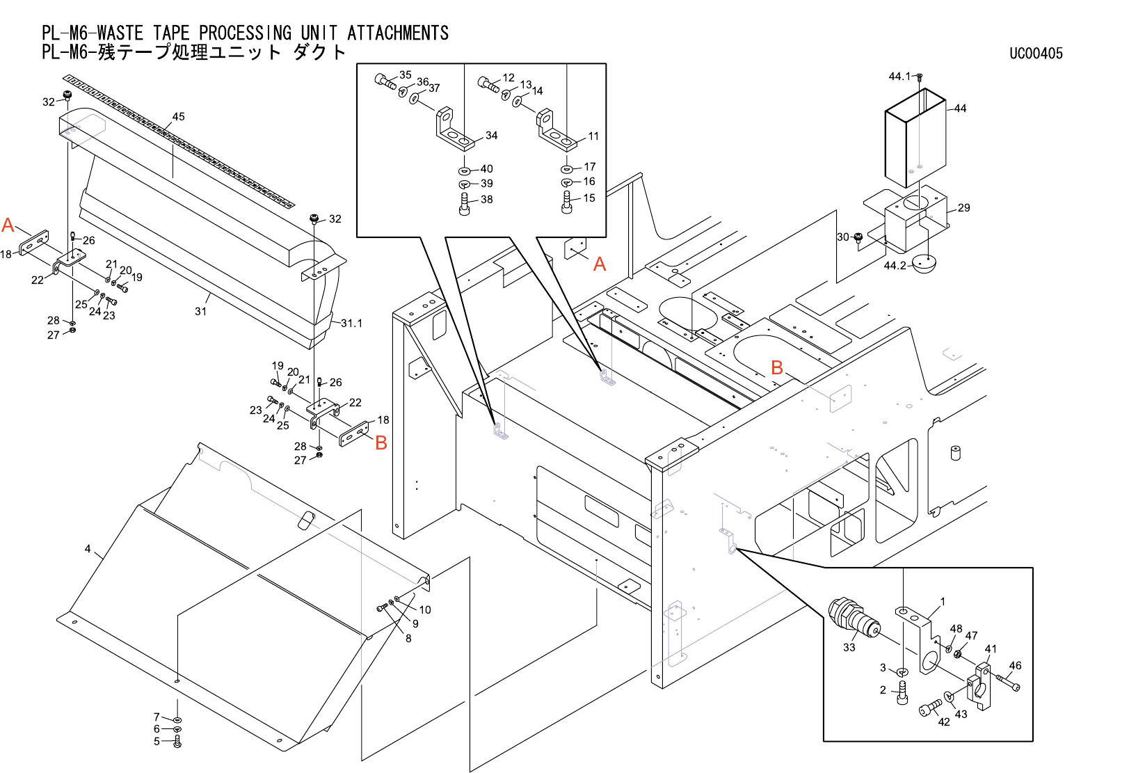 PL-M6-WASTE TAPE PROCESSING UNIT 3/ PL-M6- 残テープ処理ユニット 3/ UC00310 No. Drg.No. & Code No. QTY Description Rating Materials Remark 番号 図番 & コード番号 個数 品名 規格 材質 備考 1 PB23095 1 COVER カバー FE 2 H5275A 4 BOLT, HEX SOCKET ボ…