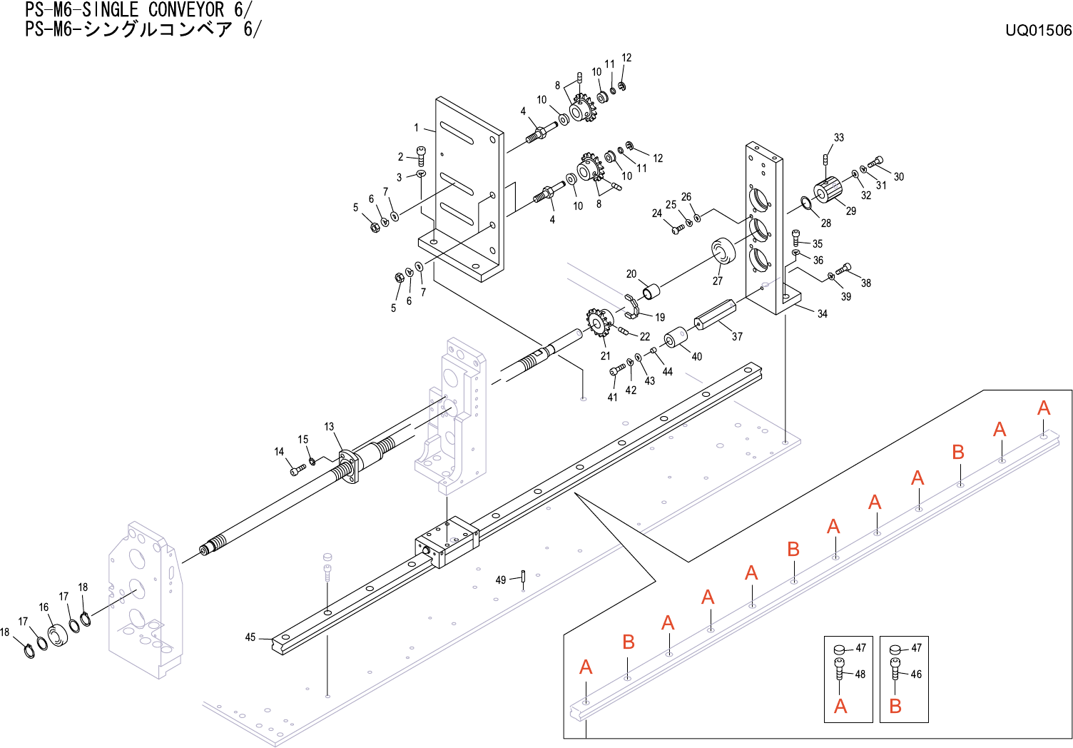 PS-M6-SINGLE CONVEYOR 6/ PS-M6- シングルコンベア 6/ UQ01506 No. Drg.No. & Code No. QTY Description Rating Materials Remark 番号 図番 & コード番号 個数 品名 規格 材質 備考 1 PM09922 1 BKT BKT FE 2 H5322A 2 BOLT, HEX SOCKET ボルト 六角穴 M06X015 …