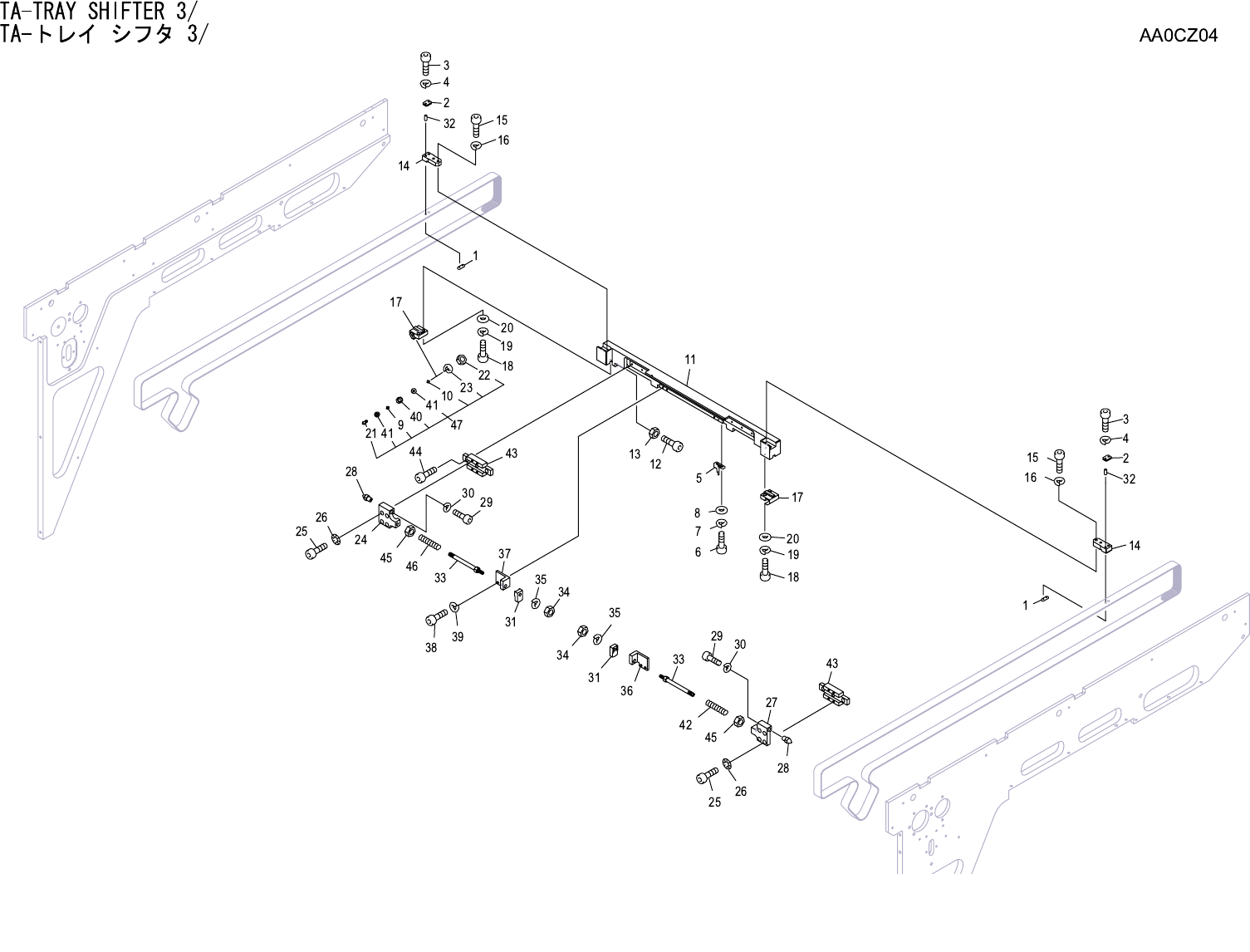 TA-TRAY SHIFTER 3/ TA- トレイ シフタ 3/ AA0CZ04 No. Drg.No. & Code No. QTY Description Rating Materials Remark 番号 図番 & コード番号 個数 品名 規格 材質 備考 1 PB15812 2 PLATE プレート FE 2 PB16161 2 PLATE プレート FE 3 H5268H 4 BOLT, HEX SOCK…