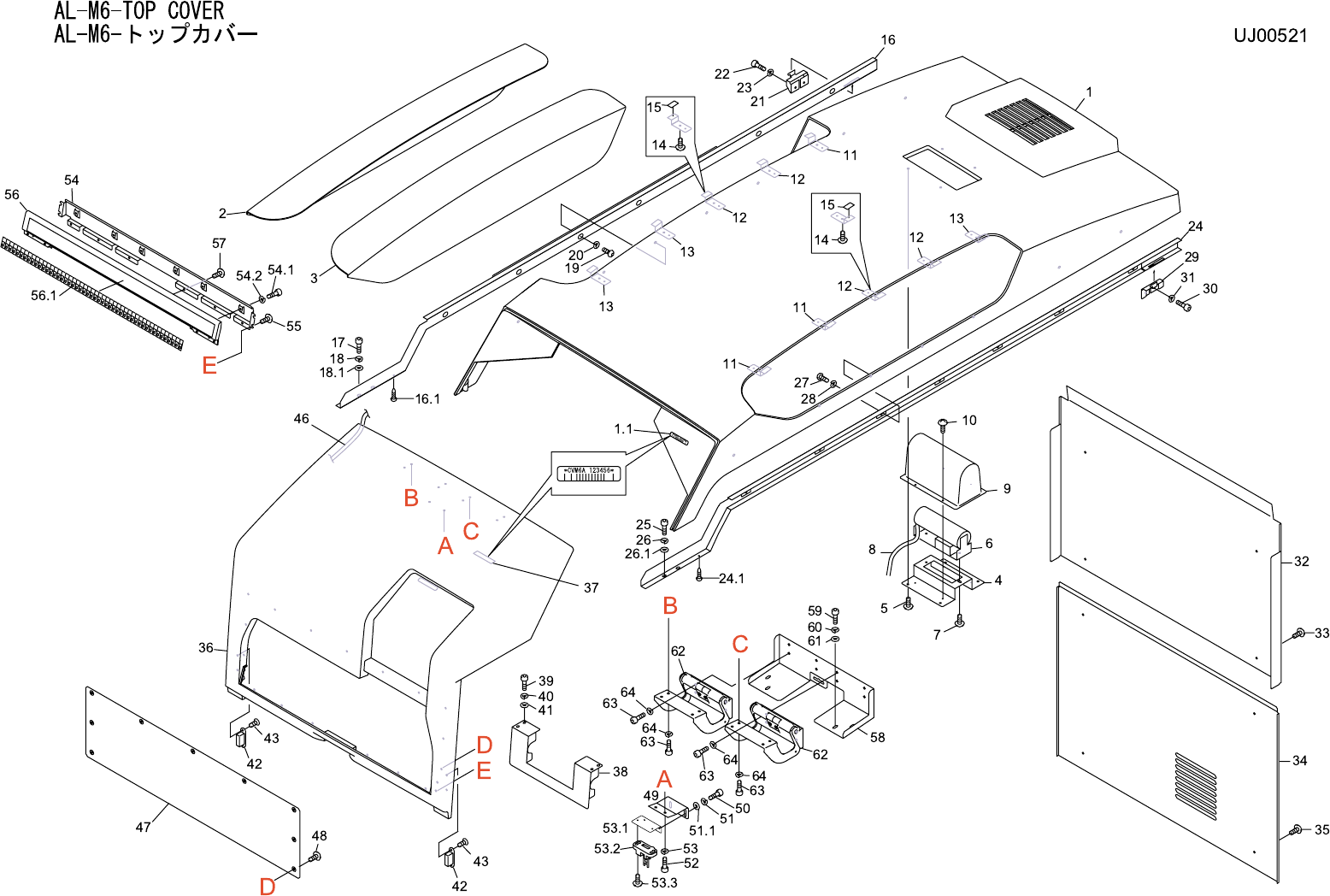AL-M6-TOP COVER AL-M6- トップカバー UJ00521 No. Drg.No. & Code No. QTY Description Rating Materials Remark 番号 図番 & コード番号 個数 品名 規格 材質 備考 1 PH00262 1 COVER, TOP カバー トップ PL 1.1 PX01530 1 SEAL, BAR CODE シール バーコード OT 2 PH0…