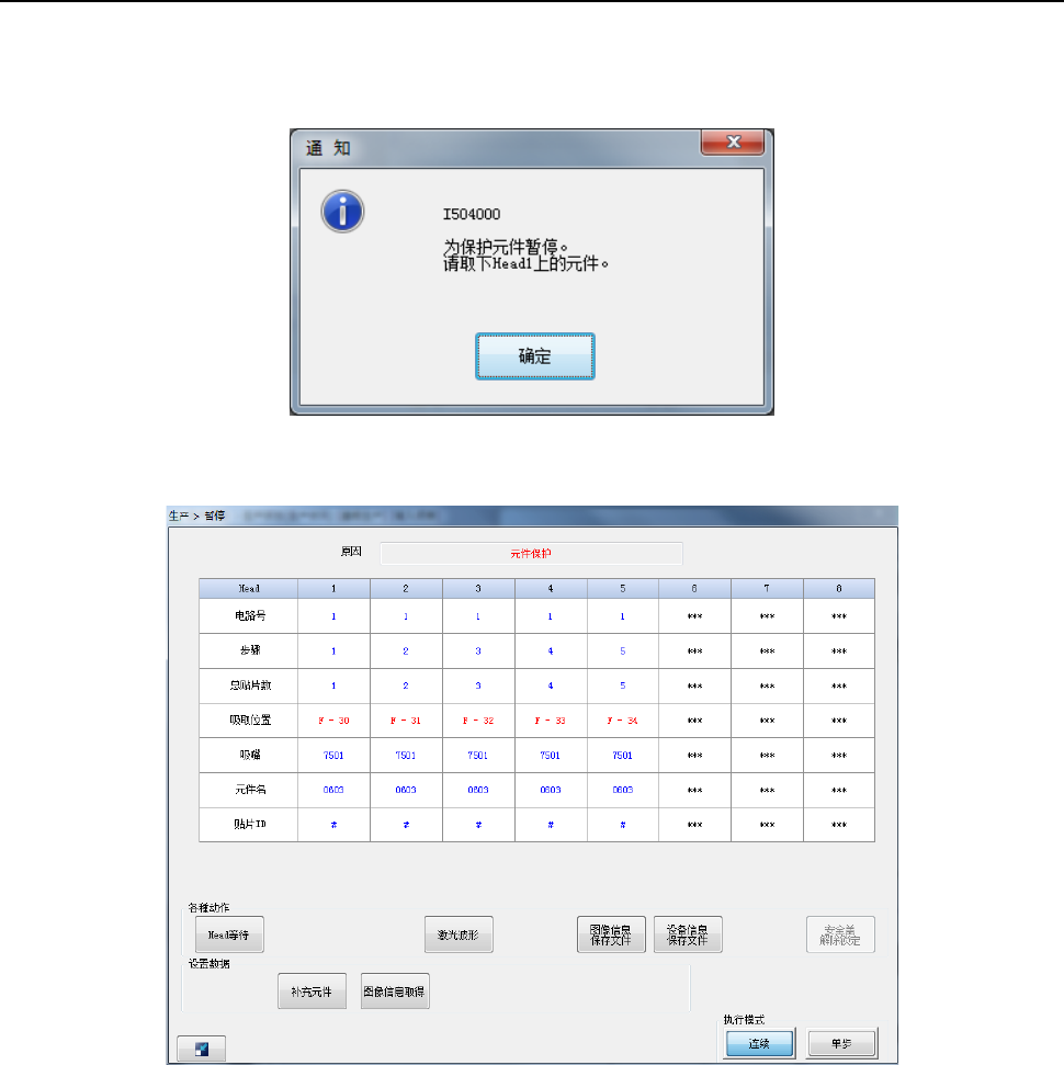 到元件保护位置后,显示通知画面,暂停生产。