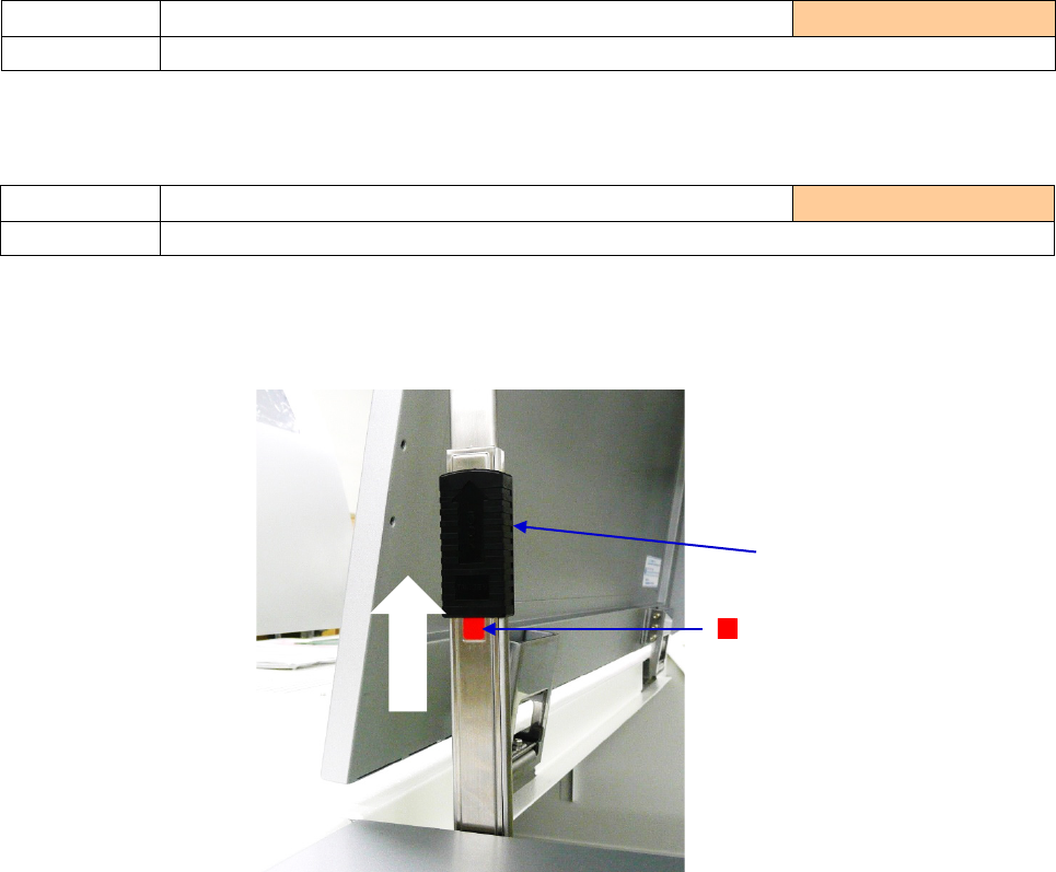 操作手册 3-8 1) 通过手动控制开动传送马达,检查滑轮旋转是否顺畅。 2) 若旋转不顺畅、或不旋转时,请更换滑轮。 1) 请抬起锁定手柄,在看得见 ■ 标记(锁定)的状态下,确 认护罩能否保持。在确认中,请注意不要令 安全盖(安全罩)落下,以免造成伤害。 检查项目 3-1- 7 传送滑轮 实施频度 : 每周 检查内容 检查传送滑轮的动作 检查项目 3-1- 8 支撑板 实施频度 :每周 检查内容 检查支撑板的状态 锁定手柄 标记 锁…